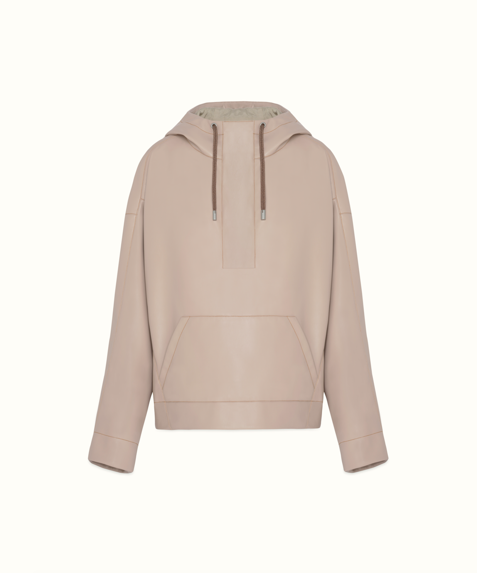 The capsule ranges from $610 for a skirt to $1,030 for the hoodies, with one of the standouts being a relaxed button-down shirt in supple leather that hangs loosely over your frame and comes in both black and beige. It's the perfect transition from your casual at-home looks to something more elegant and refined — yet still utterly comfortable.