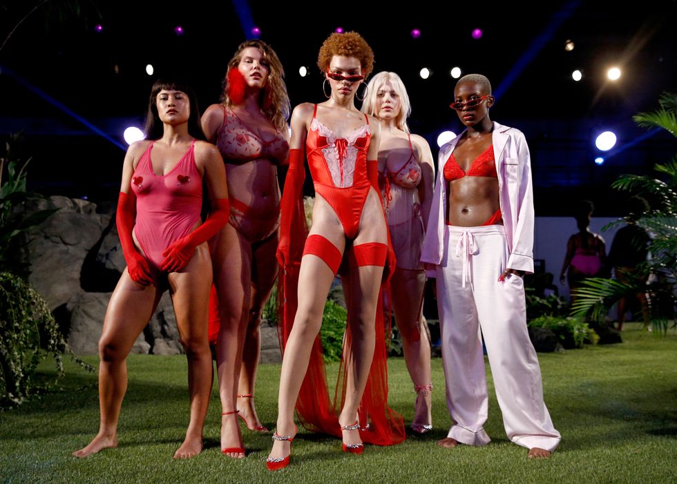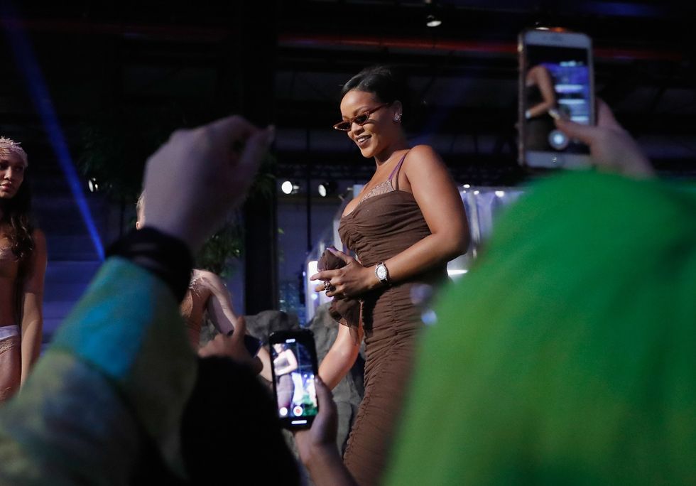 Only Rihanna could draw New York's fashion crowd to an empty building in the Brooklyn Navy Yard, on a rainy evening and after a Marc Jacobs show that started an hour-and-a-half late. But so she did, and the spectacle was worth the anticipation. Though it was a tough order to outdo her Fenty show last season, which featured flying dirtbikes and dunes of pink sand, the Rih created a utopian Garden of Eden for her gaggle of Savage babes. The space itself was transformed into a biodome filledwith tropical foliage sprouting up from lush grass-covered floors and geodomes that looked like chic blown-up planters lit with neon lights.
