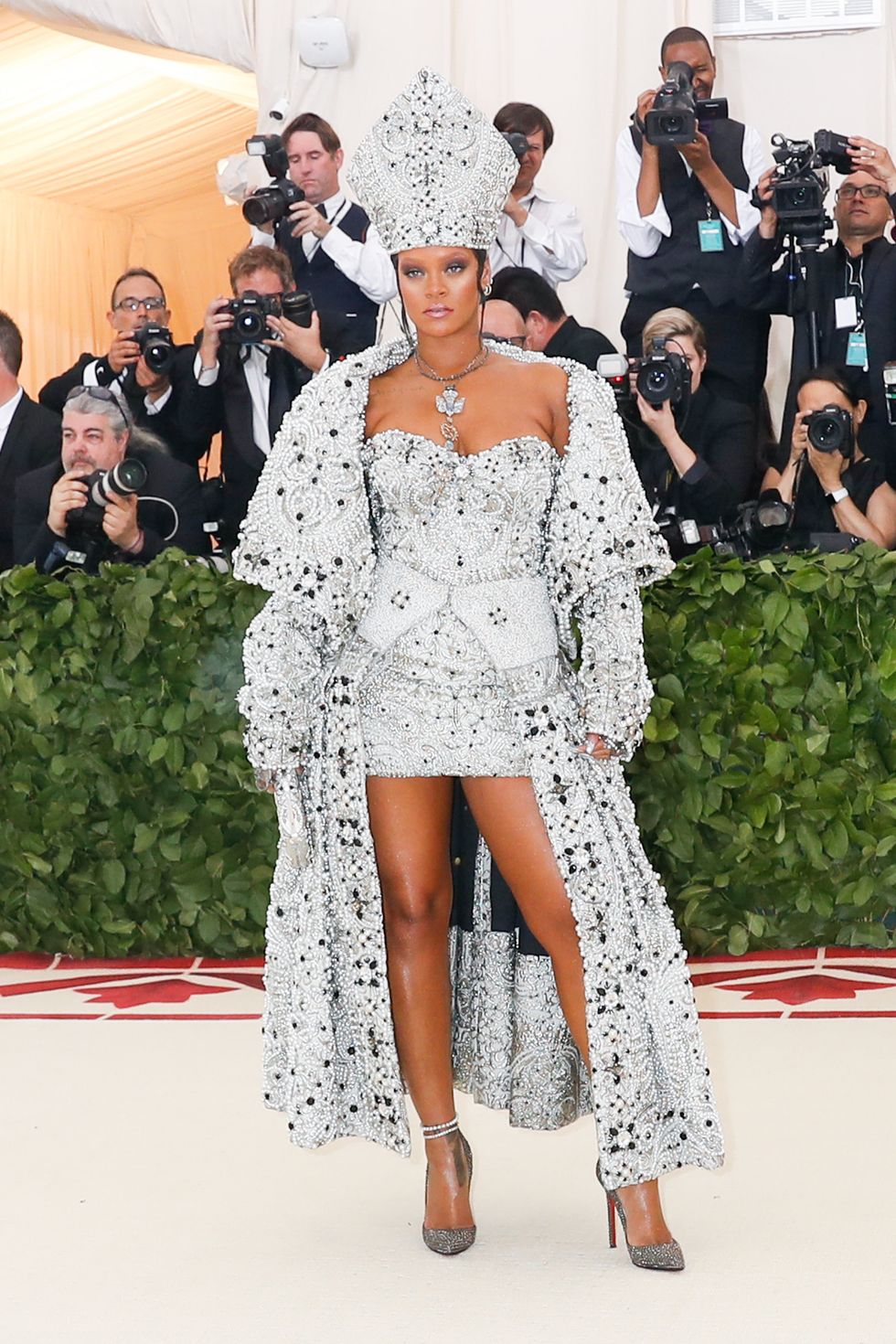 During a Q&A video with RiRi and Anna Wintour, the Vogue editor exchanges a few rapid-fire questions with the superstar. At one point, Wintour asks RiRi if she were to get married, who she would ask to design her wedding dress. Without hesitating, she responds that it would be a collaboration between herself and designer John Galliano.