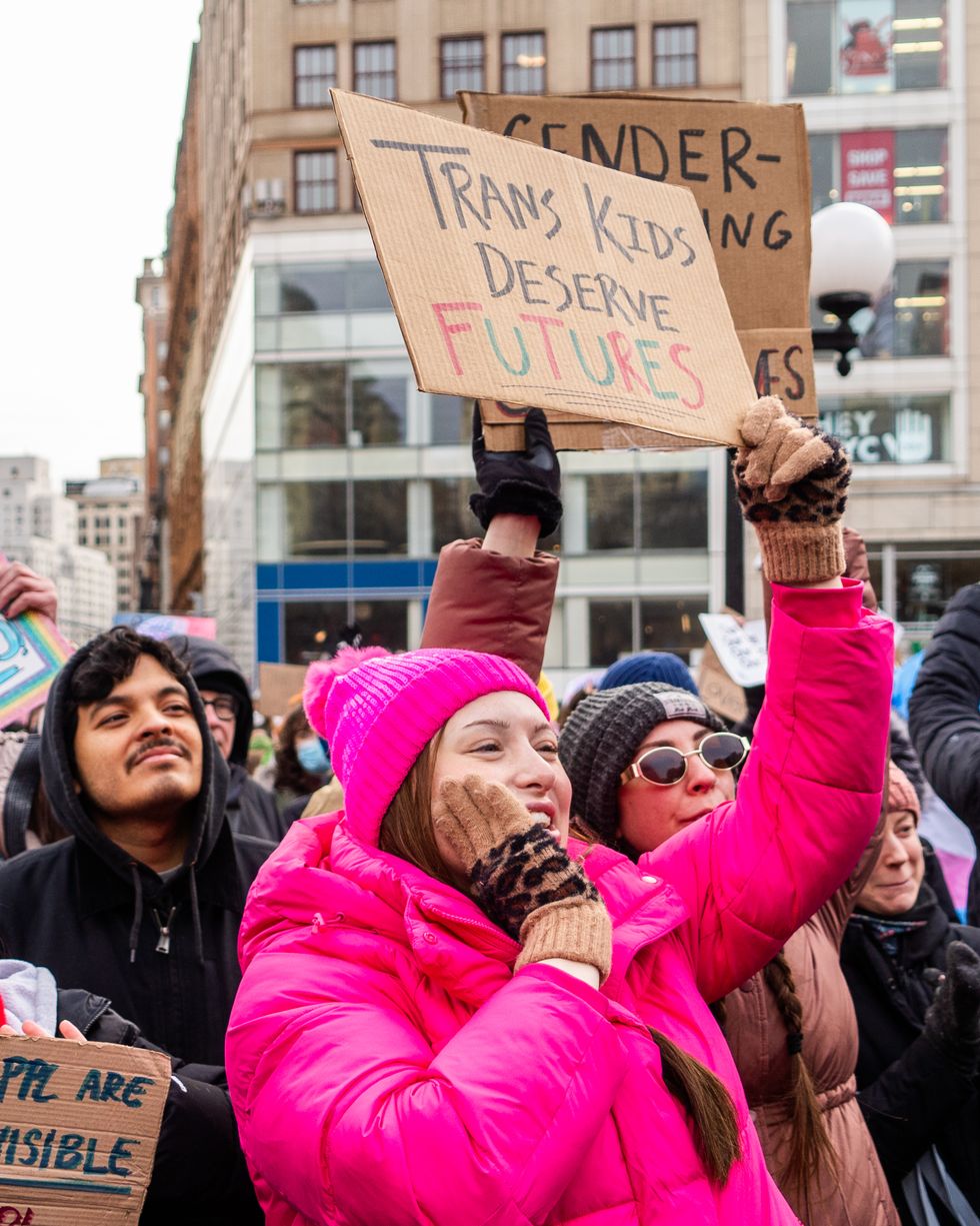 Over the weekend, thousands of protesters filled Union Square in Manhattan for The Rise Up For Trans Youth rally in response to recent executive orders under President Trump.