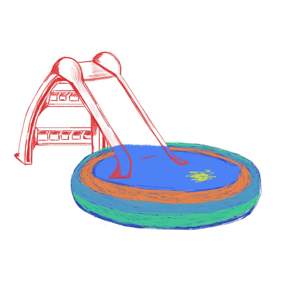 Time for the pool. We don't have a real pool. Our backyard is too small. We have an inflatable one from Target. She loves it. I set up her tiny, plastic slide so she can slide down into the water. She yells "I'm peeing!" Grab her out of pool.