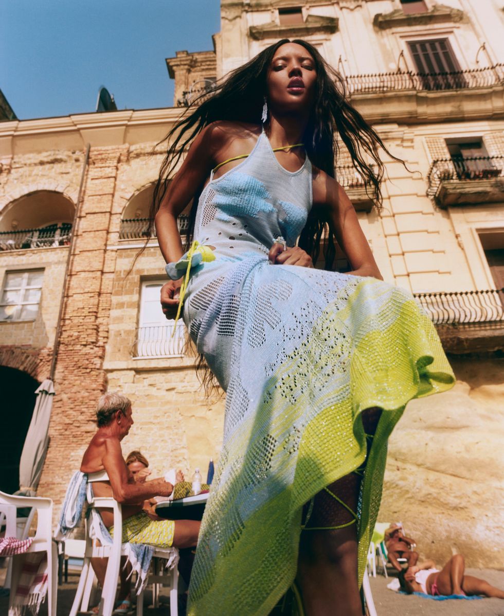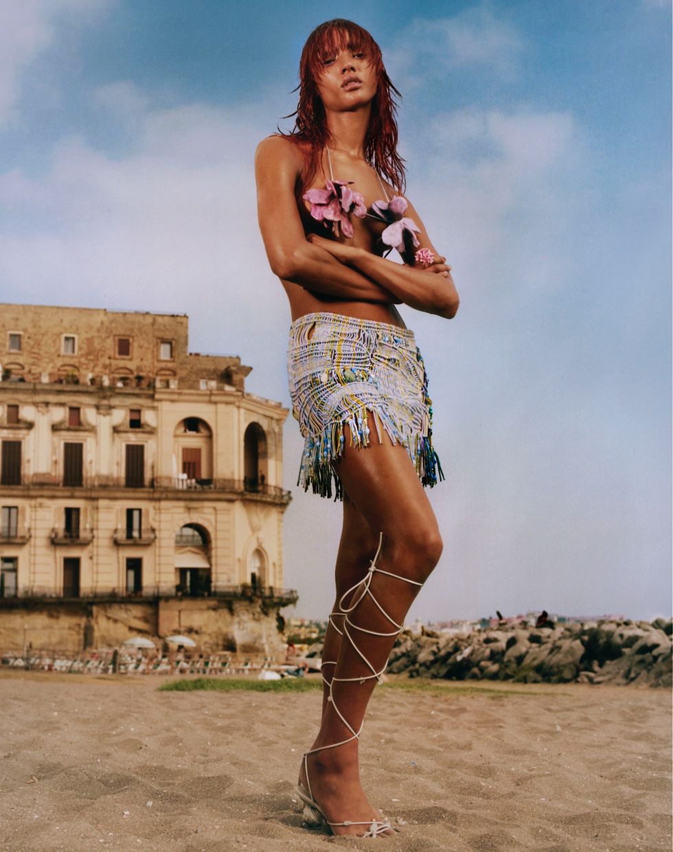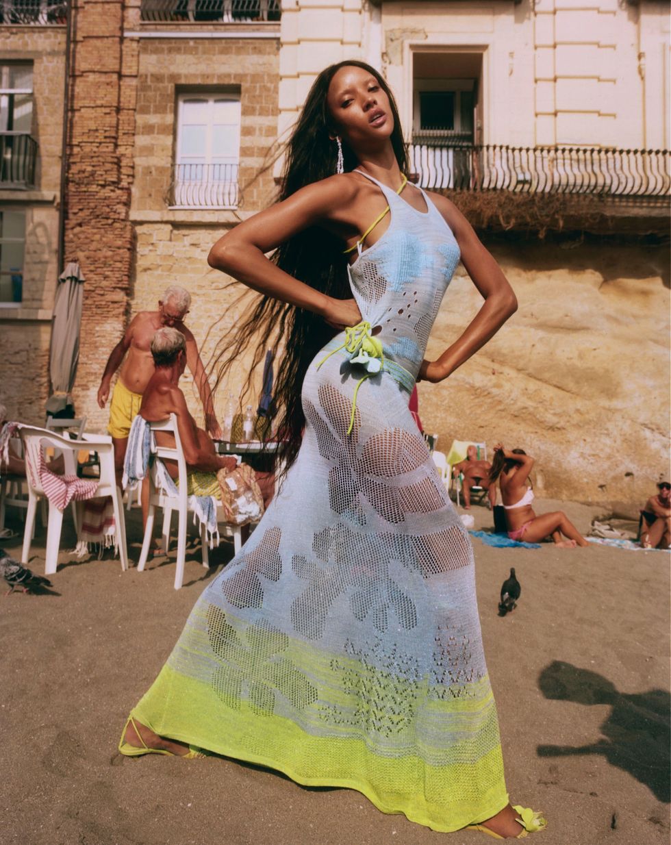The cult summer brand launched its sensual and romantic summer 2024 collection with a campaign shot in Naples by Dan Beleiu, with Georgia Palmer among the locals in elongated silhouettes, sheer materials and a joyful color palette. In the spirit of Roberta Einer, it shines light onto the various textures used, including the classic technical knit and the new “fishnet” beaded dresses that reflect the light from the sun and ocean.