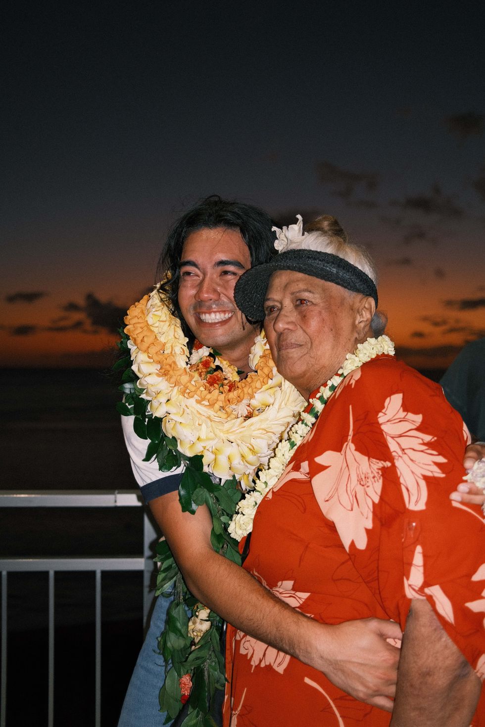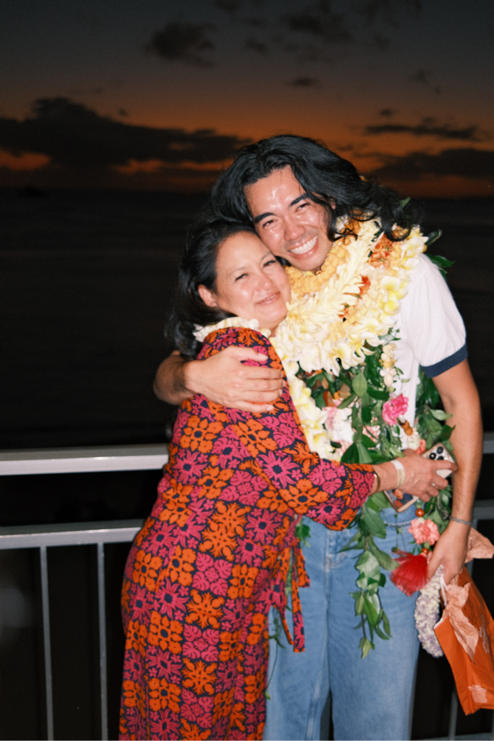 As for the woman who was crying? “That dress just took me back to the fact that my son honors our history, our Hawaiian culture. Why Waikiki is Waikiki,” Kanoe Ahuna, Rocket’s mom, told me with tears still streaming. “And by bringing that into his work, this creative world, he tells our stories. Our history is alive through our stories, and that's why I was so proud of him. Because it was Duke’s surfboard, it just told me he resonated with that history.”