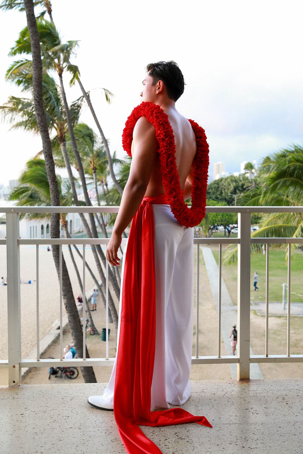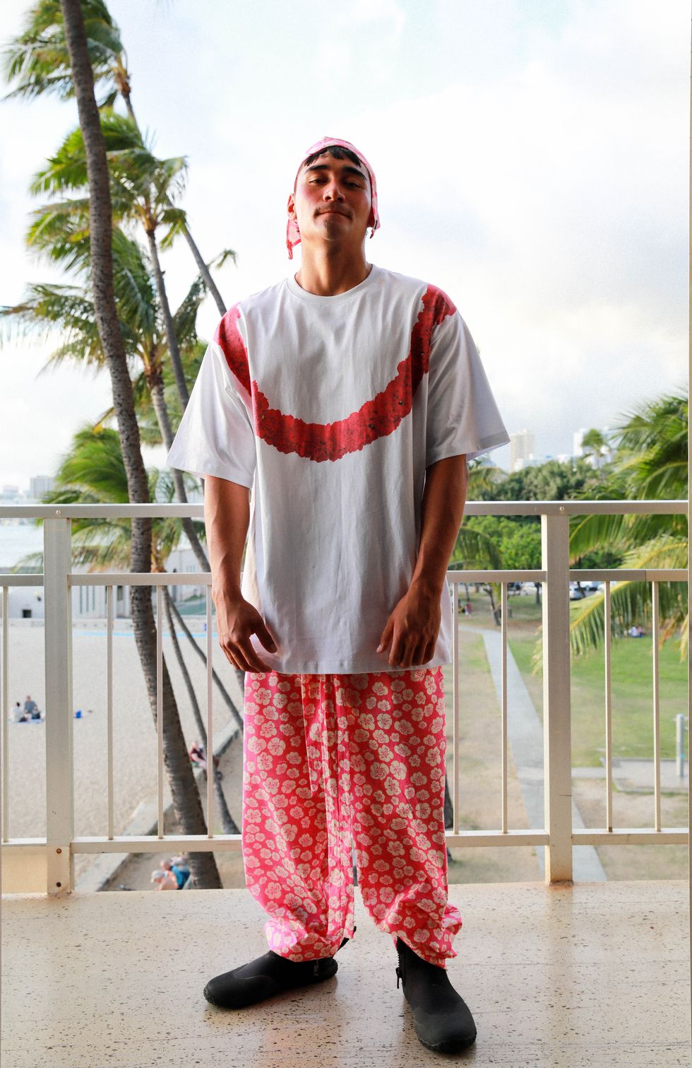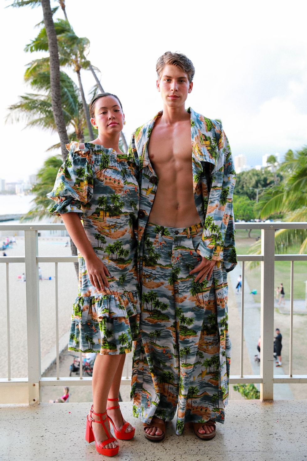 “He was a sensation around the world and brought Hawai’i everywhere, and it was such a cool thing to me growing up,” says Ahuna, a recent graduate from the Fashion Institute of Technology in New York, a few days after the show. “I resonate with that in a way. I look up to him. He is a moodboard for all aspects in my life.”