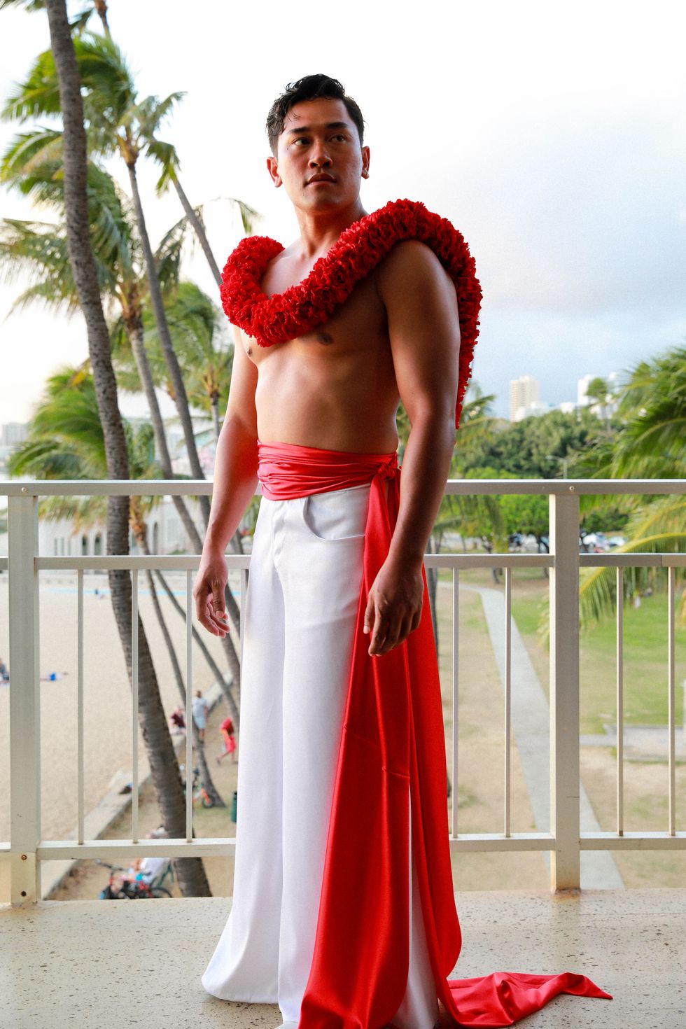 Ahuna’s goal right now is to eventually move back to New York and design collections about Hawai’i for New York Fashion Week. He says it took moving to New York to fully reclaim his mahū identity — the Hawaiian word for someone who sits between male and female, who were traditionally the healers and keepers of cultural tradition—and he misses the independence and freedom he experienced there. But for now, he knows Hawai’i is where he needs to be. It’s where he’s cultivated his “fashion family,” a network of friends and family he relies on to bring his creative vision to life. “The critiques that I'm able to get here, from just my peers alone, is the most beneficial thing,” he says, adding that his professors in New York were understanding of his concepts but lacked the cultural foundation necessary to really push it forward.