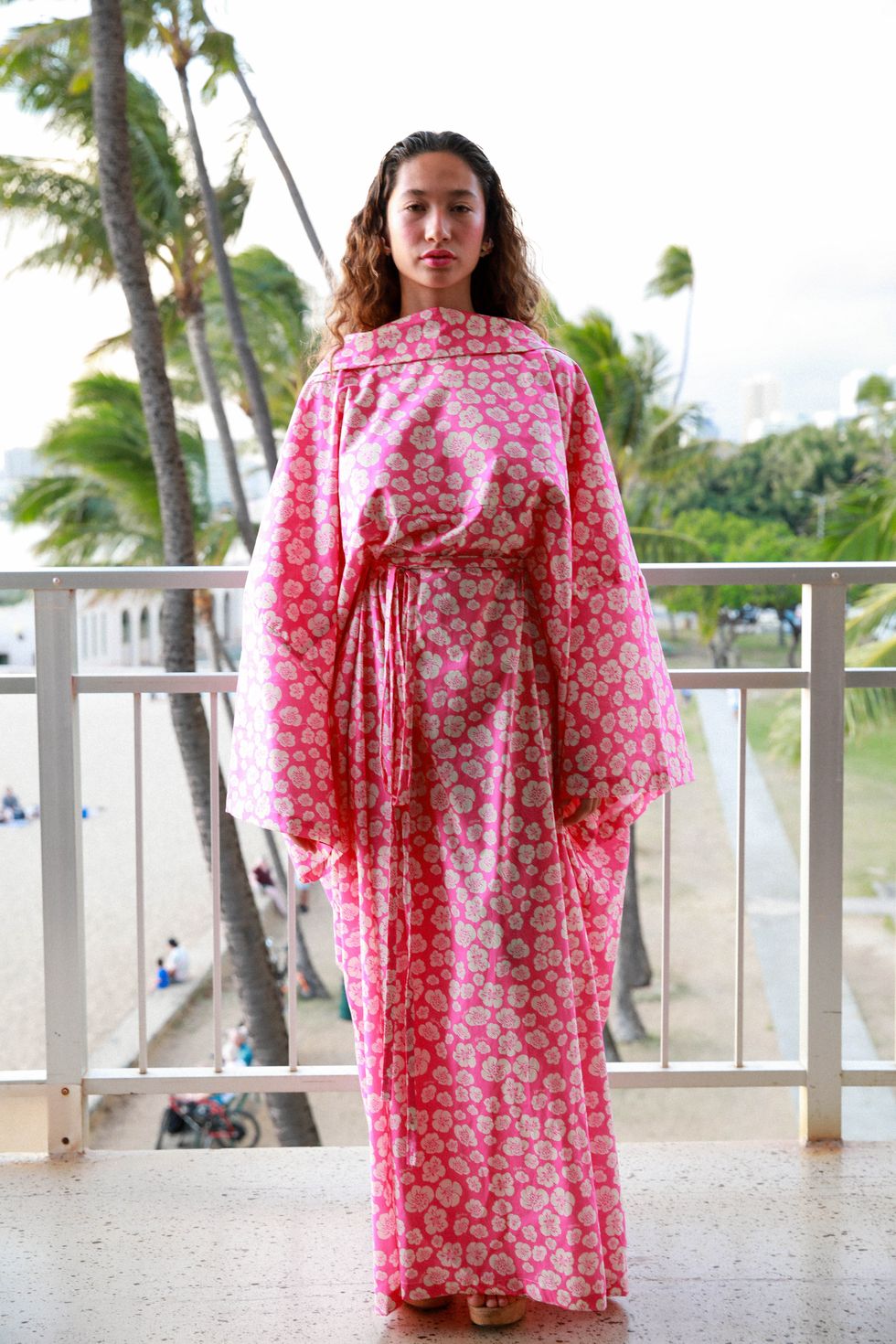 Ahuna, who’s 22 and grew up in Kapa’a on the island of Kauai, designed the collection while in residency at Kaimana Beach Hotel, where he set up his atelier in an emptied guest room. He took inspiration from the surrounding area, taking long walks and sifting through the Hawaii State Archives for texts and images of a bygone Waikiki, which means “spouting fresh water.” Before developers transformed it into a playground for tourists, Ahuna was struck by how lo’i, or wetlands, separated Waikiki from Oahu’s interior. It was once the area where Hawai’i’s ali’i, or noble class, would come for leisure, and was the first capital of The Kingdom of Hawai’i from 1795 to 1796. Today, Waikiki is largely regarded by locals as a place for tourists, with the 3.5 square mile stretch accounting for 42 percent of Hawai’i’s visitor revenue.