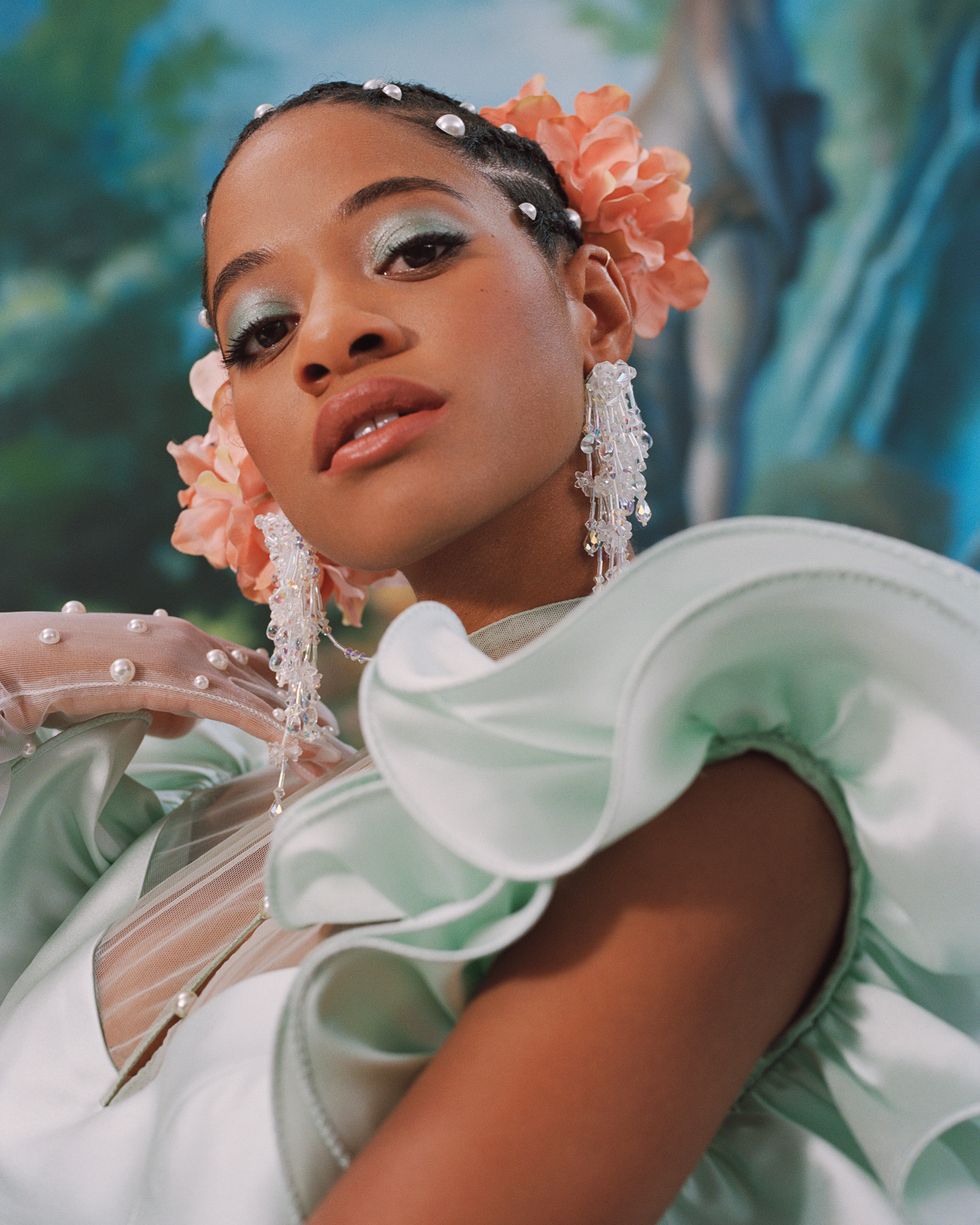 As for the clothes, Rodarte once again delivers drama and elegance thanks to layers of tulle, brightly colored sequins and decadent embroideries. Asymmetrical ruffled dresses, a Rodarte signature, are on full display along with pearl-adorned sheer gloves and dangly earrings.