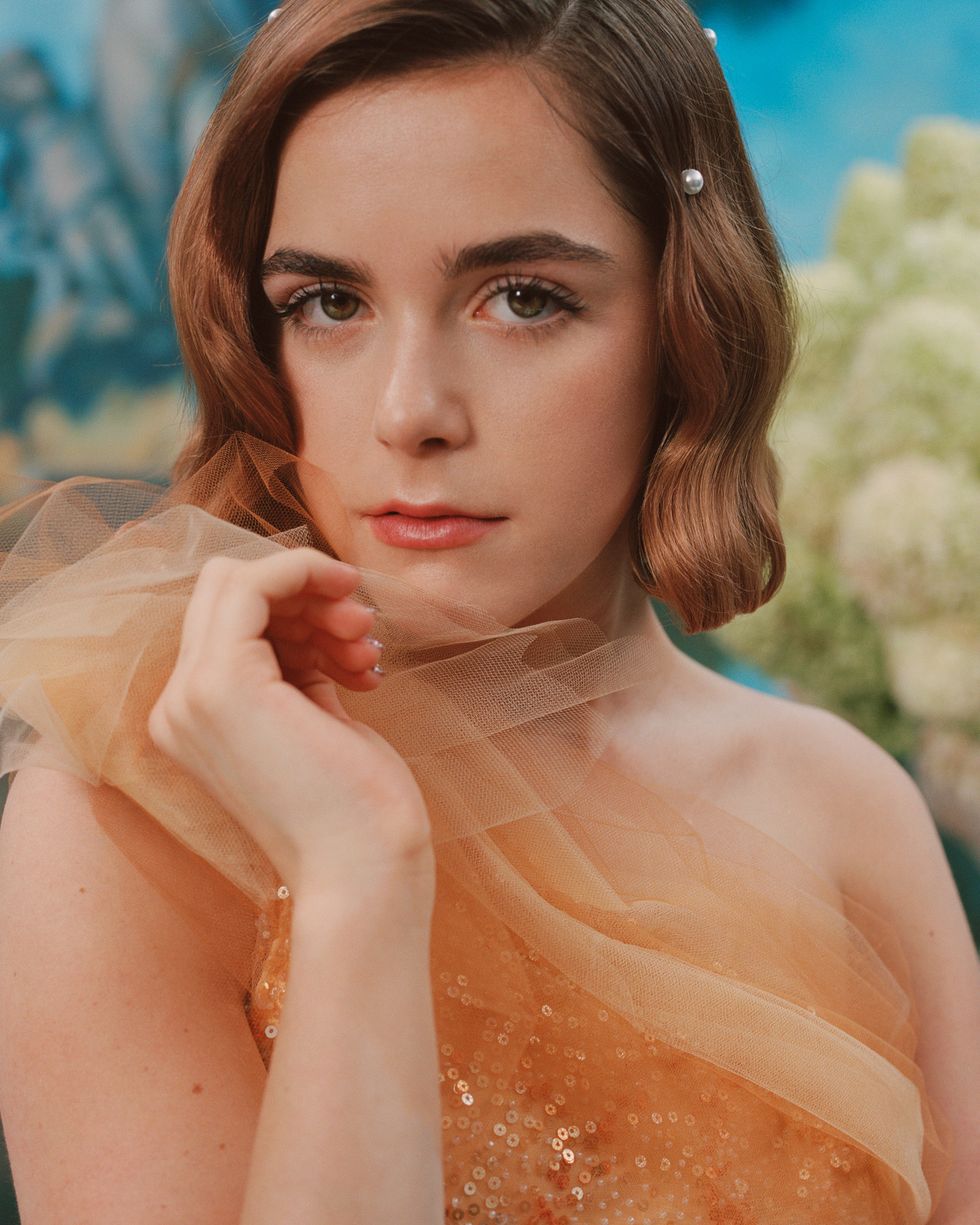 Jones and Shipka are also featured separately in the regal and dreamy lookbook by the luxury label, known for its moody-romantic aesthetic and big presence in the LA red carpet circuit. Shipka, who is 19 now, poses in ethereal beaded gowns and evening dresses, while Jones looks glamorous in a ruffled polka-dot ensemble and matching boots.