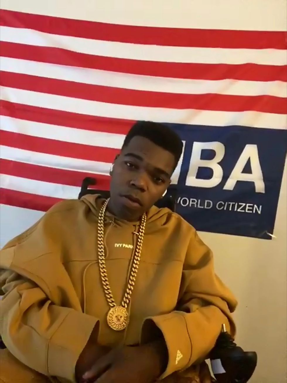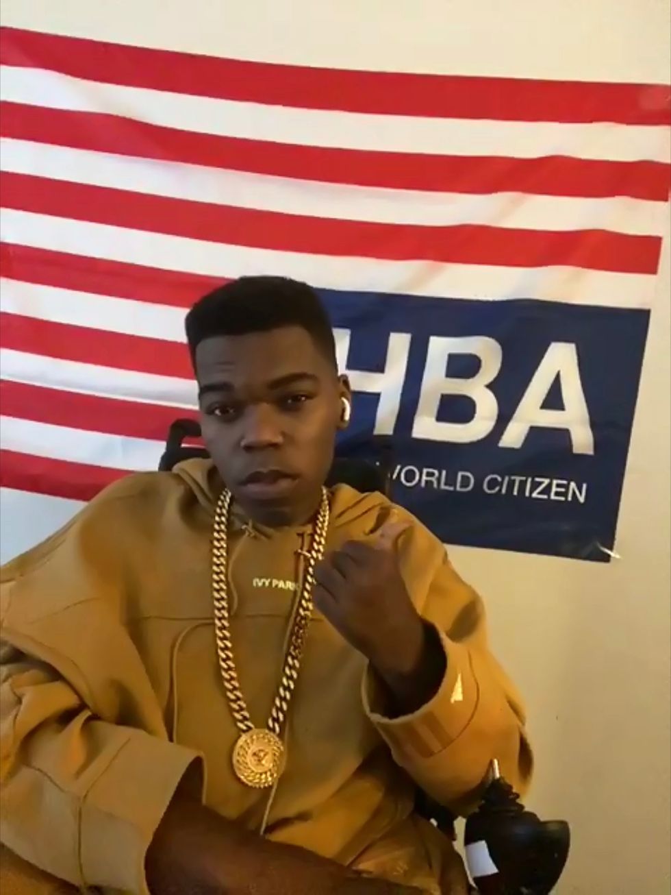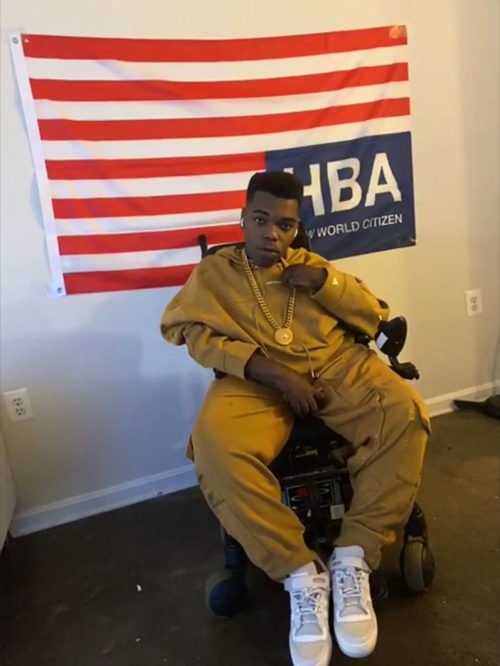 I'd pass the New World Citizen flag onto someone who's 10 years younger than me in a wheelchair. And I say that because 10 years ago, I didn't know I'd be at this point in my life. I always wanted to be famous, I always wanted to be the King of Wheelchairs, but I would give this flag to someone who I think is going to become someone better than me, or like me in a way. "United We Stand," but we didn't stand, we rode. I'm giving you this flag to show that you can become your own symbol and become the next wheelchair emoji yourself. Don't just think that because you don't have representation that the world is against you. We could be in an even greater pandemic 10 years from now. I want you to always think of this flag as us united together.