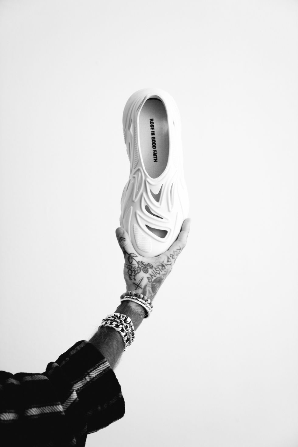 Indeed, while the brand is known for collaborations with music artists — past projects include capsules with The Kid Laroi and Lil Peep — their first main-line shoe (which will go for $130 and be available at The Webster and H Lorenzo) marks the beginning stages of a renewed brand vision for Rose In Good Faith.