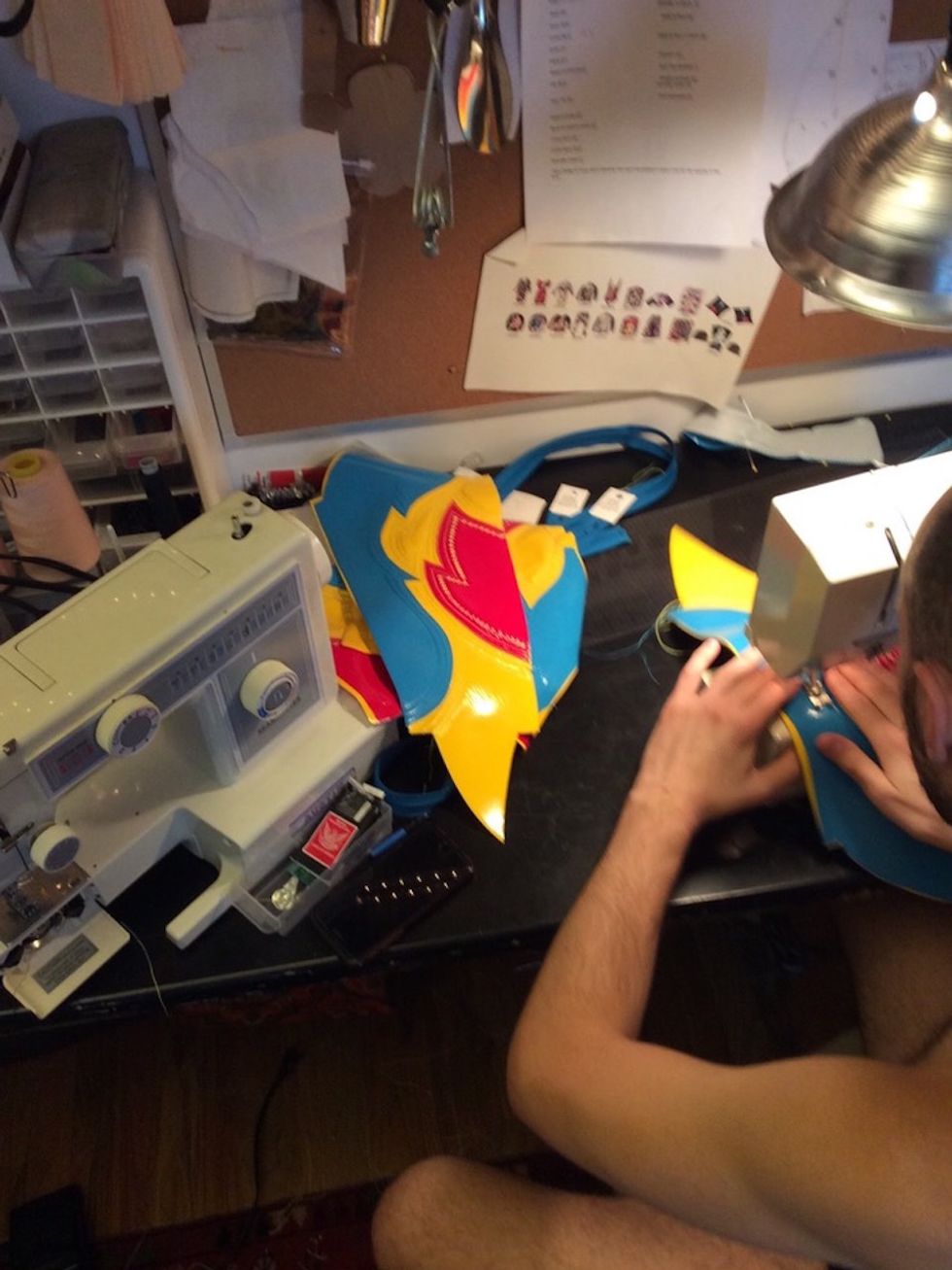 Michael Wiernicki: Thank you! I have to agree, honestly. I was so happy. Aquaria and Austin (Virgil) were already friends, so [Aquaria] found out she was cast for season 10 and got in touch with Austin and was very — obviously not saying she was on Drag Race but was obviously about to be on Drag Race — and she knew she needed to have a swimsuit challenge look ready. The concept for the Luchador look had come from a project she'd done at Parsons, so she knew that's where she wanted to go with it and we took it and ran with it. I was really into this particular fabrication, I'd been making other stuff in the same materials and playing with the same top-stitching technique so right away I knew that's how we should embellish the whole look. We had a few fittings, scrambled because it was a pretty short turnaround, it was really quick. We made it happen.