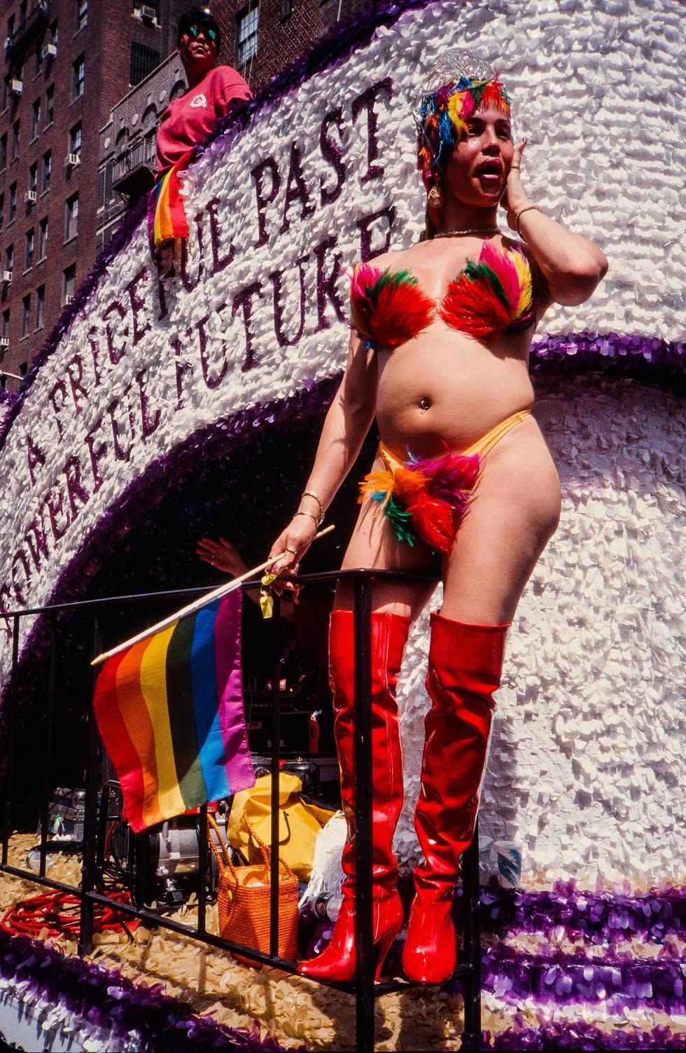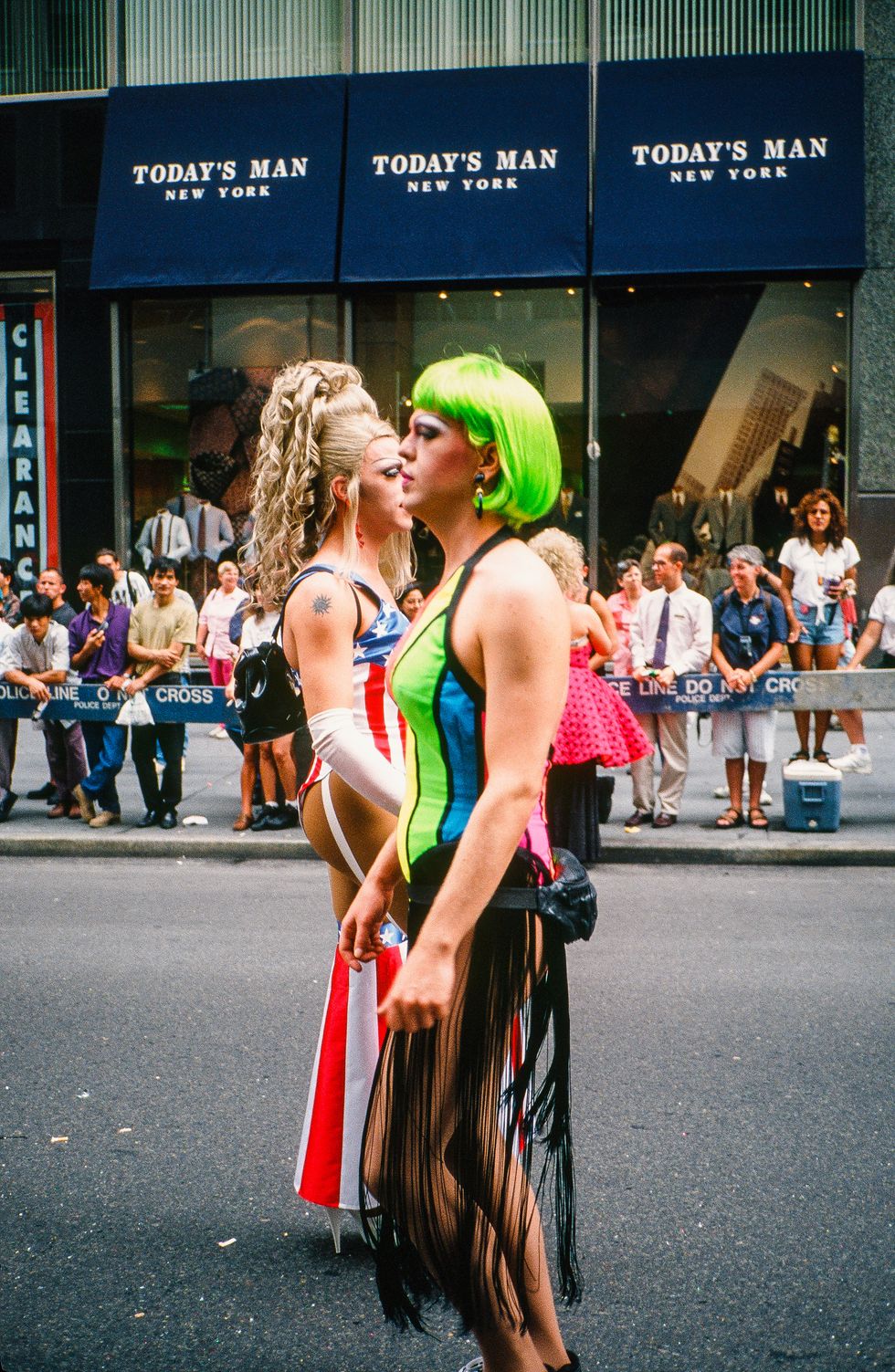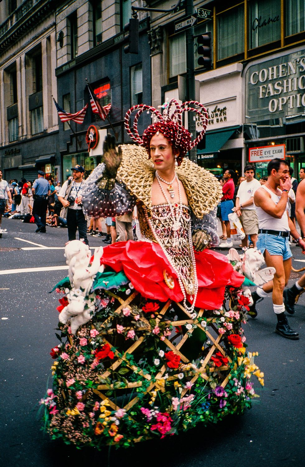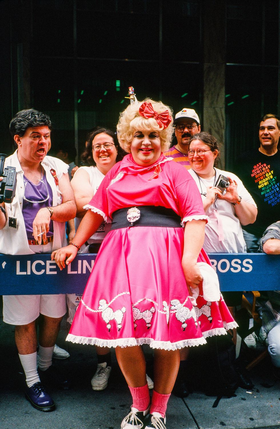 Nine years later, photographer and longtime friend of PAPER, Henny Garfunkel (who captured Brooke Shields as a drag king for us in 1990) shot her first Pride march. A mainstay in the downtown gay scene of the '80s and '90s, headquartered at Club 57, Henny started going to Pride simply to support her friends like Tom Rubnitz, Keith Haring, Rollerina and Lady Bunny.