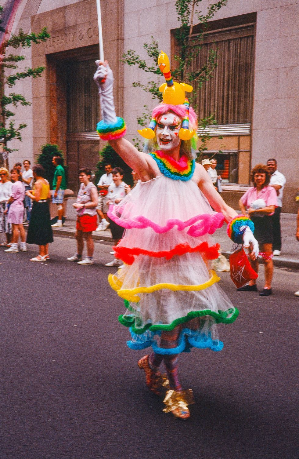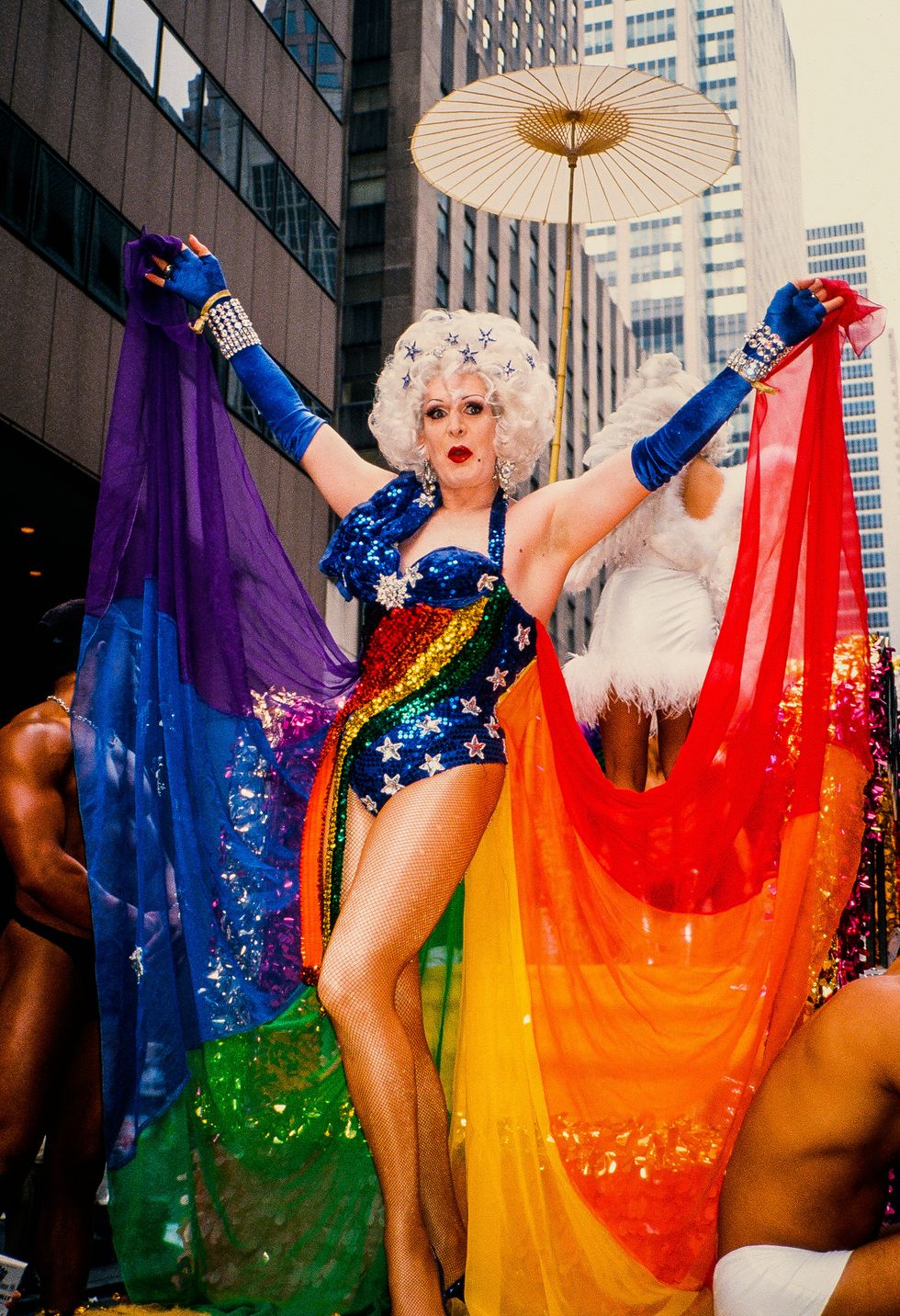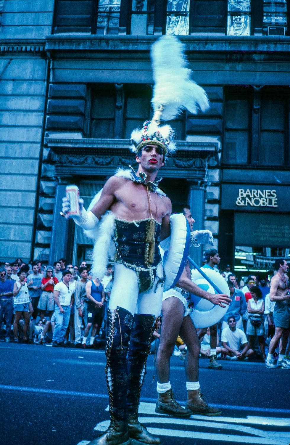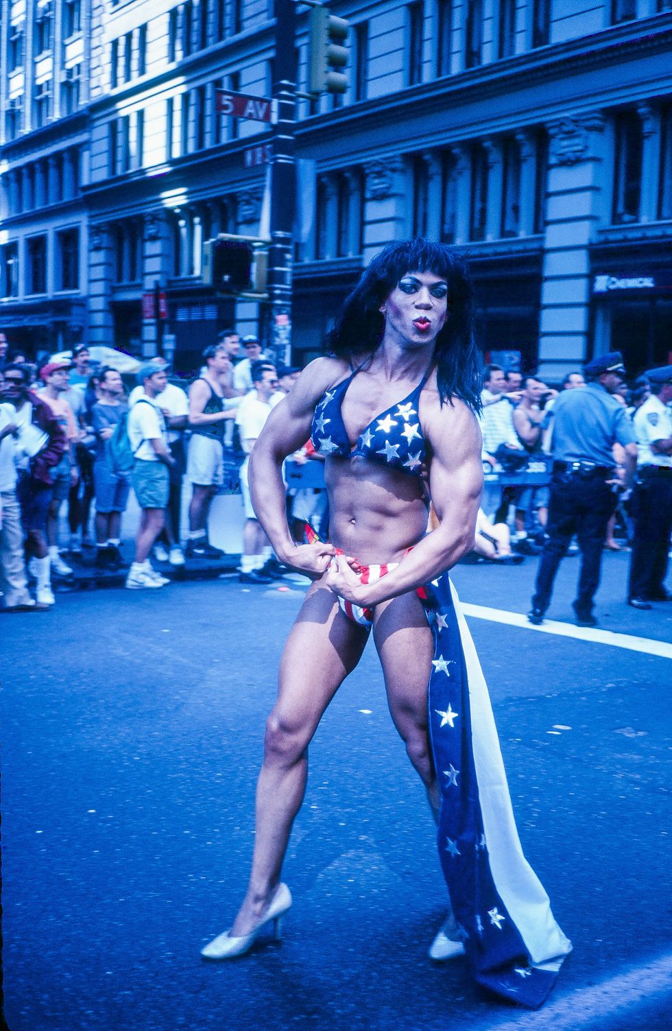 Nine years later, photographer and longtime friend of PAPER, Henny Garfunkel (who captured Brooke Shields as a drag king for us in 1990) shot her first Pride march. A mainstay in the downtown gay scene of the '80s and '90s, headquartered at Club 57, Henny started going to Pride simply to support her friends like Tom Rubnitz, Keith Haring, Rollerina and Lady Bunny.