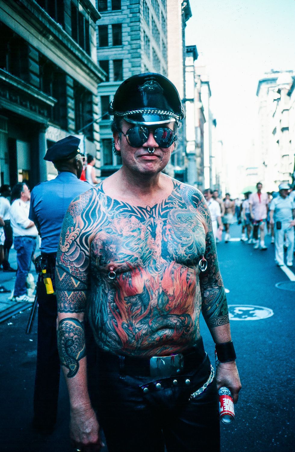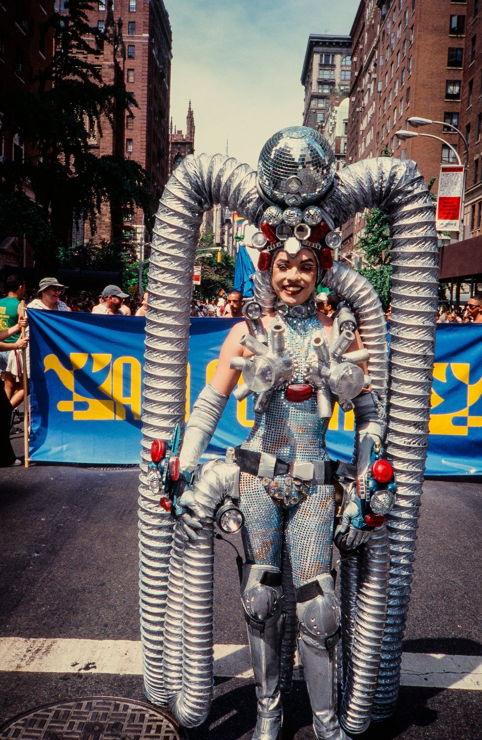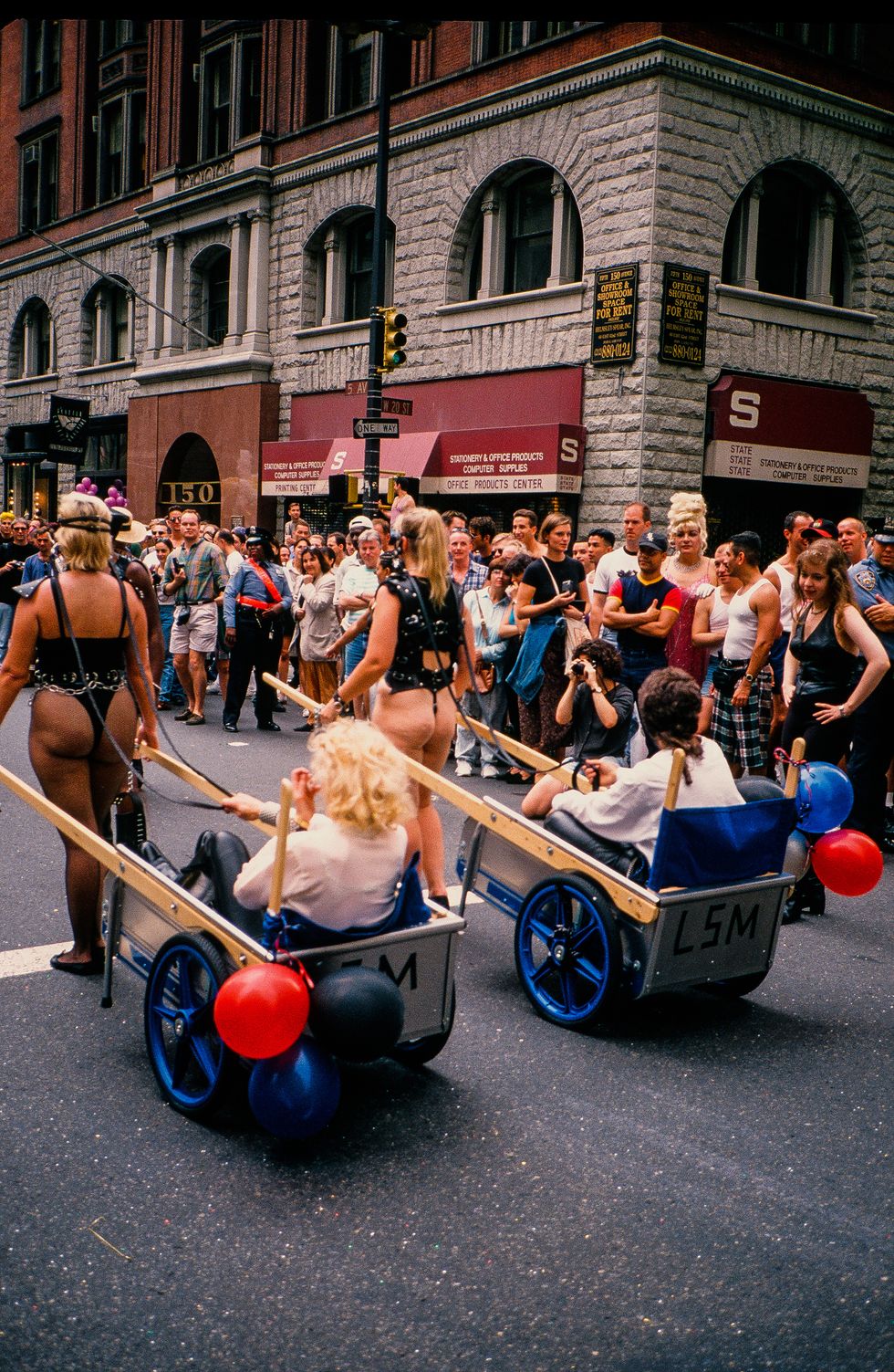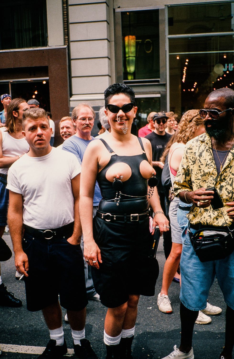 Nine years later, photographer and longtime friend of PAPER, Henny Garfunkel (who captured Brooke Shields as a drag king for us in 1990) shot her first Pride march. A mainstay in the downtown gay scene of the '80s and '90s, headquartered at Club 57, Henny started going to Pride simply to support her friends like Tom Rubnitz, Keith Haring, Rollerina and Lady Bunny.