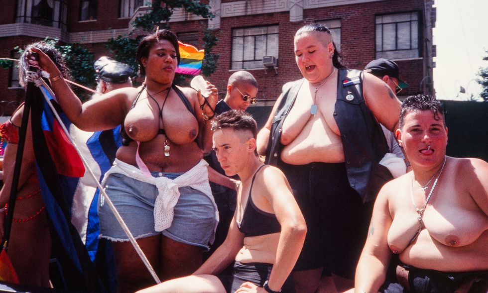 The fact that Pride looks different now — like Coachella, stripped of radicalism, compliant with police, bloated with rainbow capitalist cash from investors who don't question how their day-to-day business hurts queer people — is something of a broken-record conversation. "Now Apple or Chase Bank has a float. There was very little advertising back then," Henny remembers. "It's slick, but back then it was rough, homegrown. It was more which tribe you were associated with, the Pyramid Club or whichever."