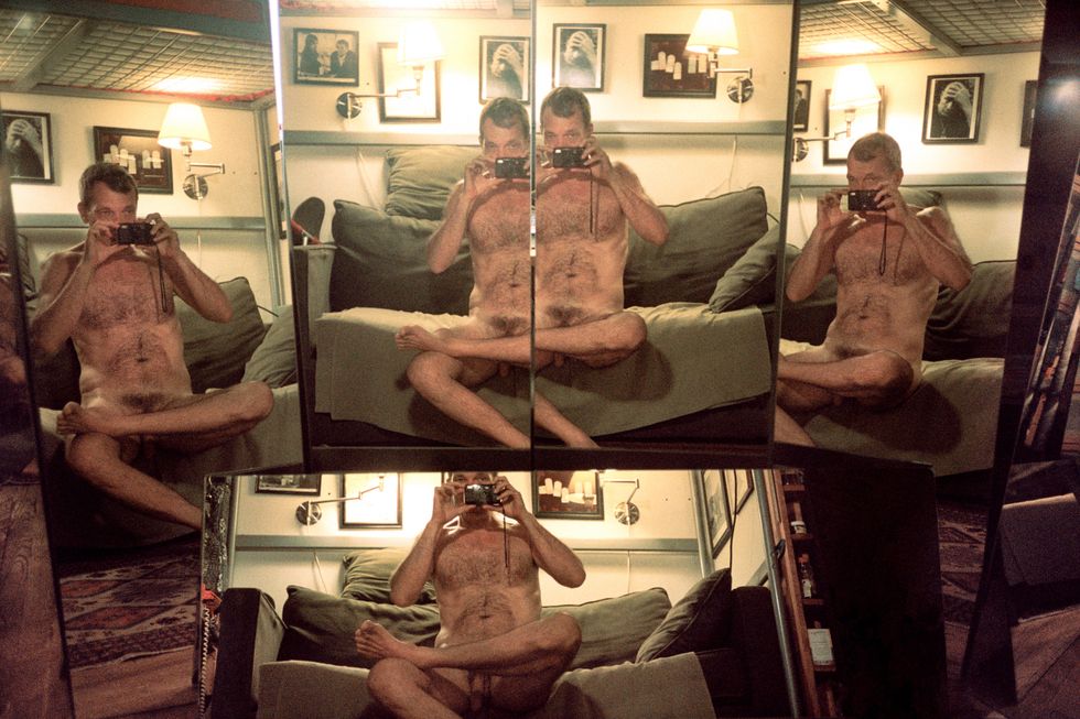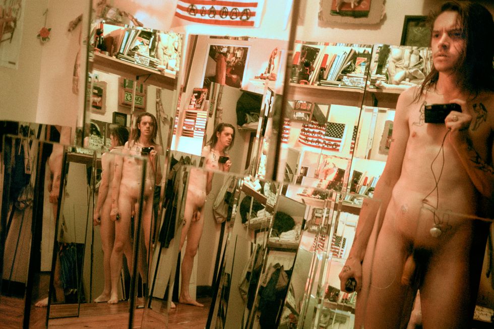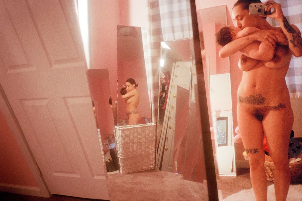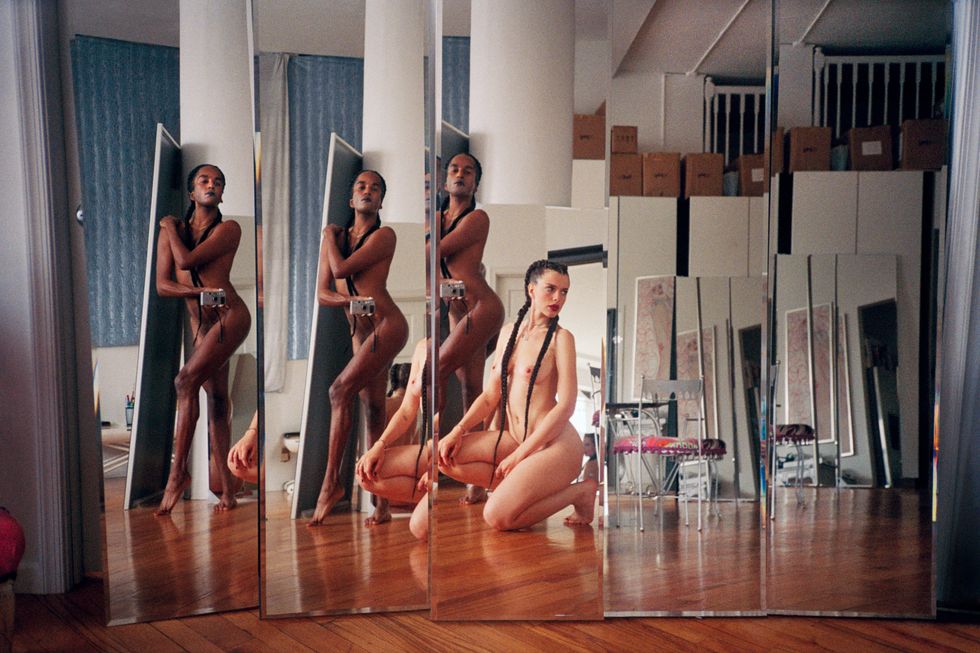 Mirror Mirror, out now through Rizzoli, allows subjects to experiment with what they see in their own reflection, guided by McGinley's instructions culled from on-set experience, which range from playful ("fake laugh," pretend you're a "paparazzi in one frame, celebrity in another") to affectionate ("cuddle and kiss your pet"). Subjects were not allowed to edit, as they shot themselves using five rolls of film each, which McGinley went through and edited down to one image per model. Another caveat: the participating models were all nude (NSFW warning), and they took their "Sol LeWitt selfies," as McGinley calls them, in the privacy and comfort (or discomfort) of their own homes.