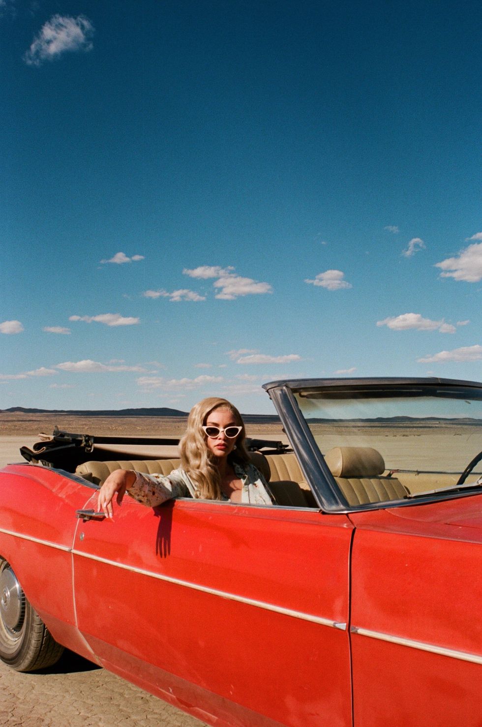 Meanwhile the visual, directed by Ozzie Pullin, was inspired by the smoking guns and deathbed embraces of noir and crime films. We see Claudio star in a Bonnie & Clyde meets Pulp Fiction tragic love story. Head-scarfed and cats eye sunglasses-adorned, she and her lover drive their convertible top-down through a desert, holding up gas stations to pay for their adventures.