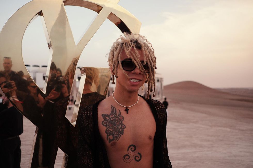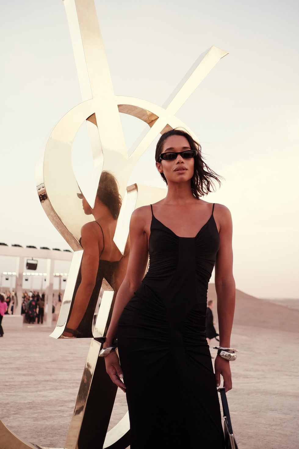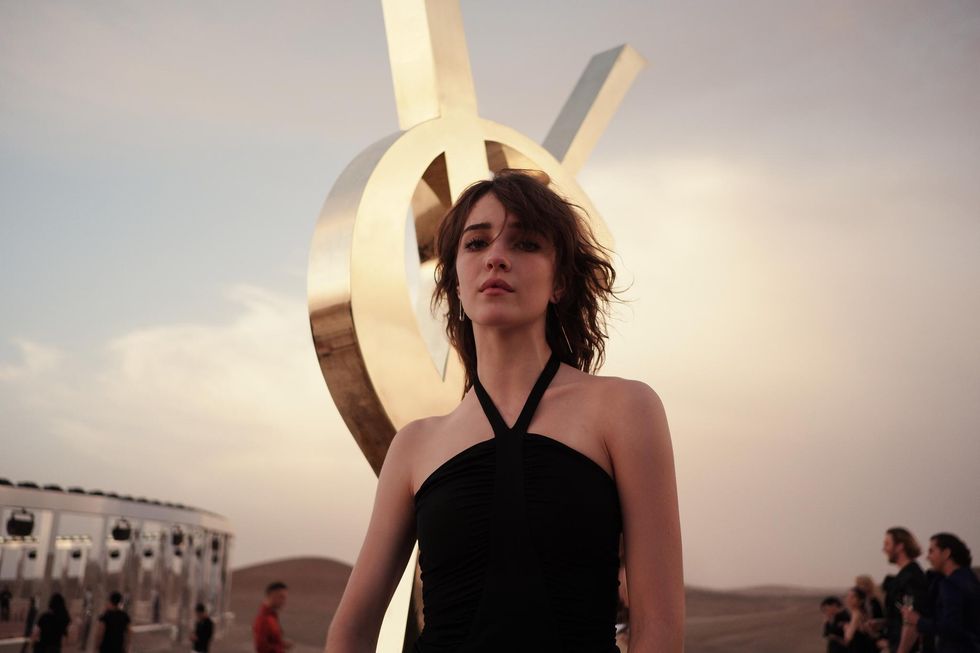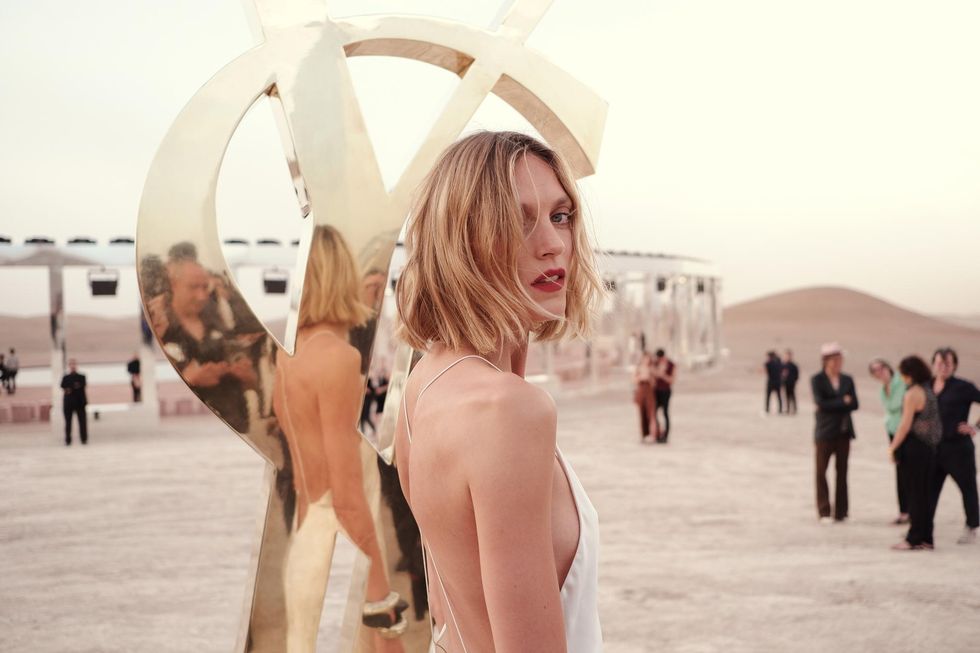 Like last year's Venice installation, a collaboration between creative director Anthony Vaccarello and American artist Doug Aitken, the luminous Marrakech set was the result of another partnership, this time with London-based stage designer Esmeralda "Es" Devlin (she does a lot of work for the Super Bowl's half-time shows).