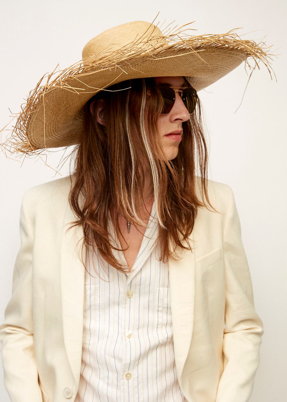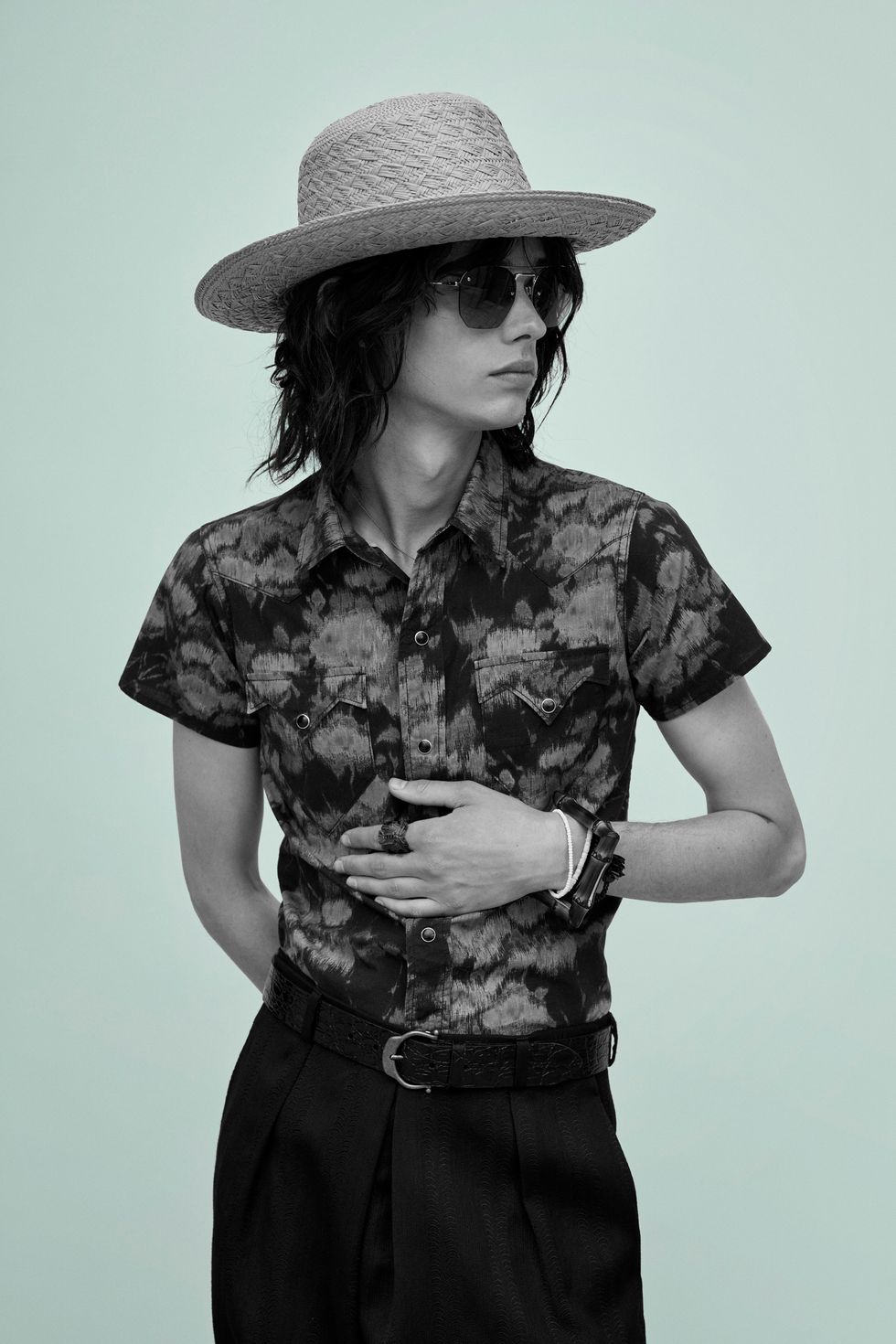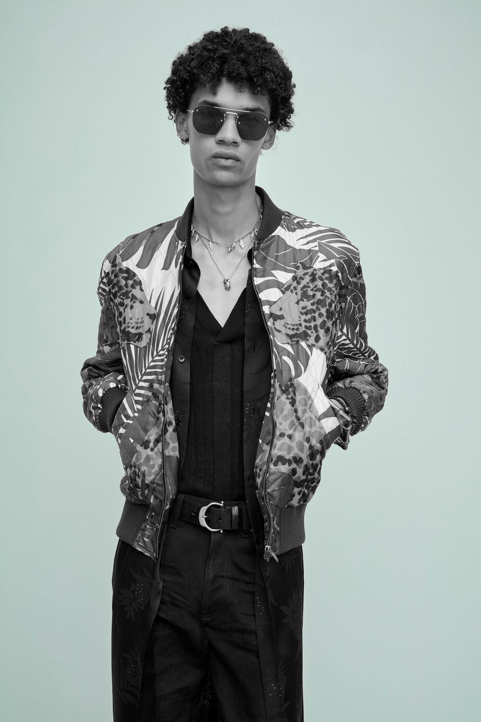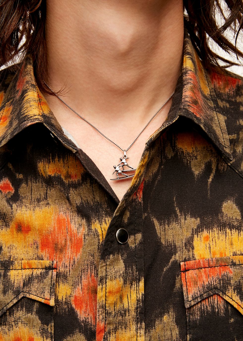 The clothes, meanwhile, are a continuation of Creative Director Anthony Vaccarello's fixation with California cool, seen in printed Hawaiian shirts, luxe bombers and casual Bermuda denim shorts. Brand staples like cropped trousers, skinny suits, wide-brimmed hats and satin shirts complete the surfer-rock star vibe.