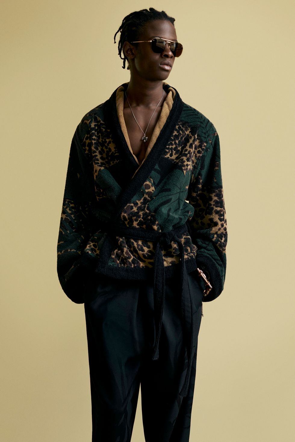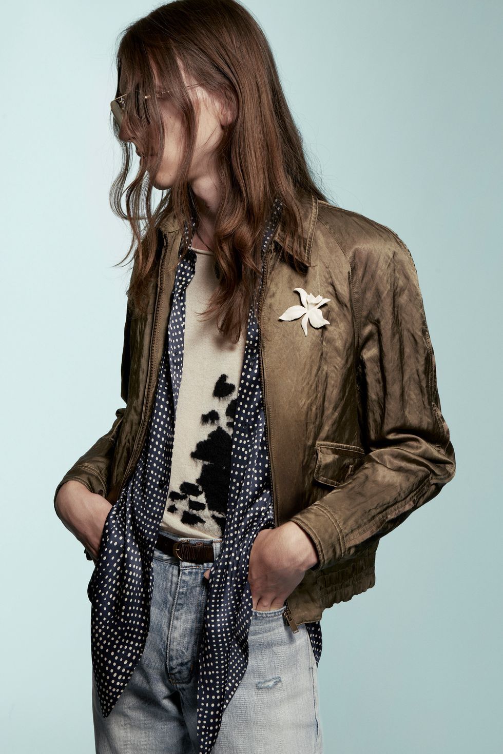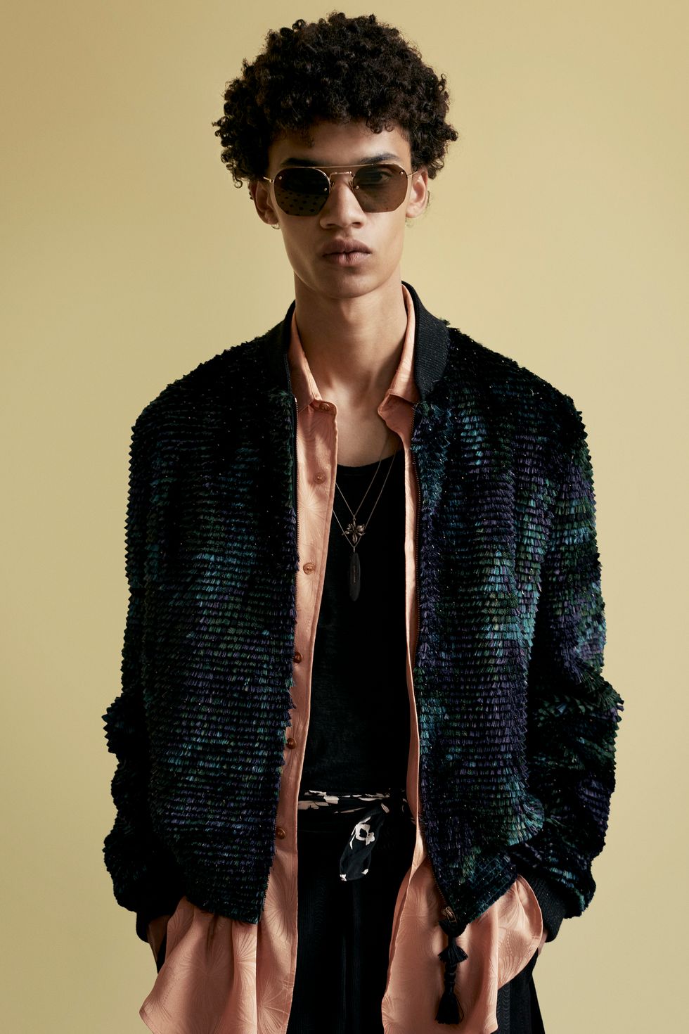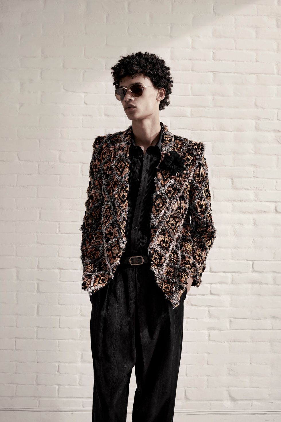 The clothes, meanwhile, are a continuation of Creative Director Anthony Vaccarello's fixation with California cool, seen in printed Hawaiian shirts, luxe bombers and casual Bermuda denim shorts. Brand staples like cropped trousers, skinny suits, wide-brimmed hats and satin shirts complete the surfer-rock star vibe.