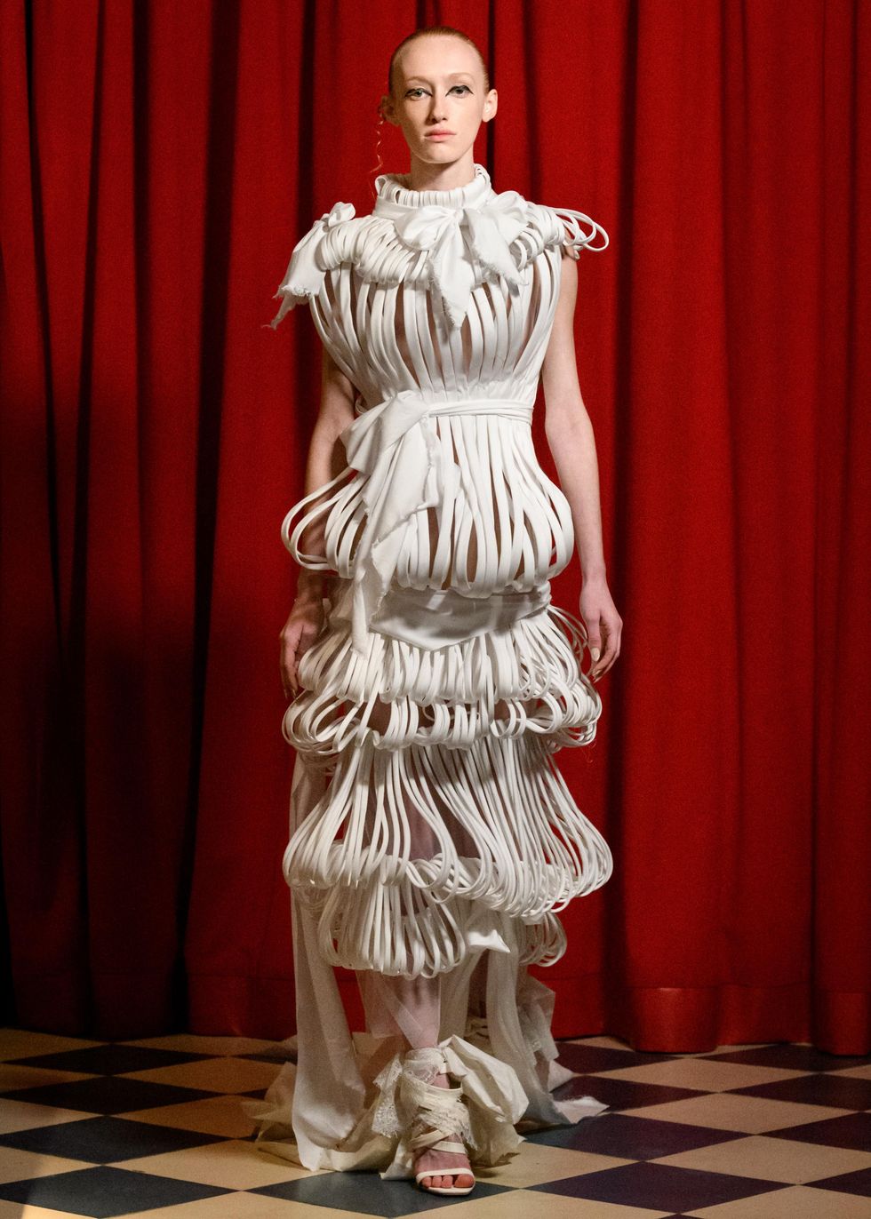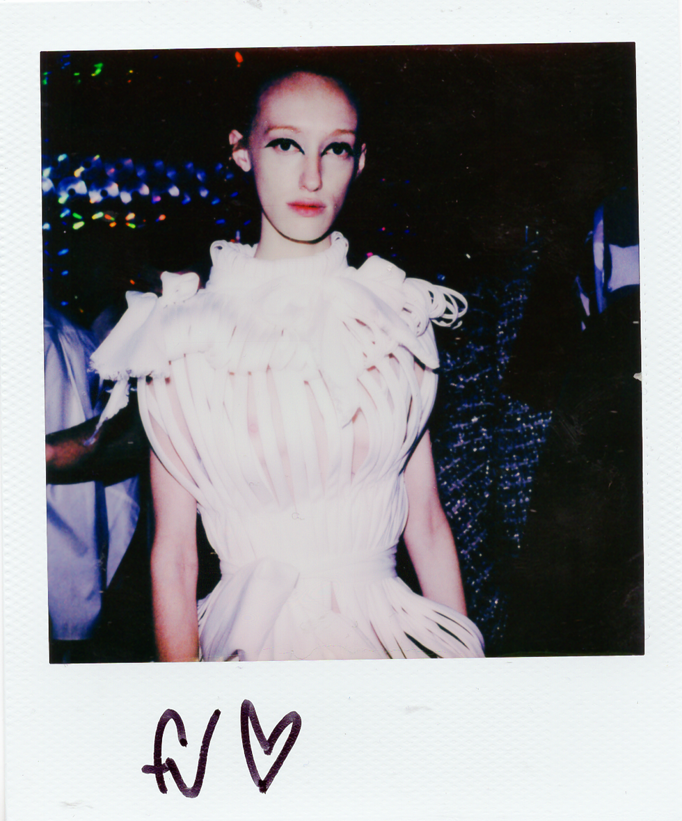 Her finale look checked all three: Martins' take on a wedding dress, which looked like white paper strips suspended from the body. It was “weeks in the making,” she says, and one of the first pieces she started knowing the time needed to perfect it. “Thursday night before the show, we were reviewing the final design on the form and I had a moment where I really had chills because of how beautiful I imagined it to look once it was finished,” she says. “It did not disappoint.”