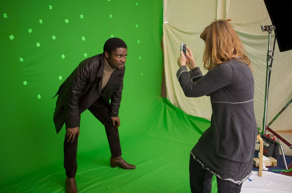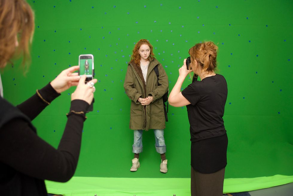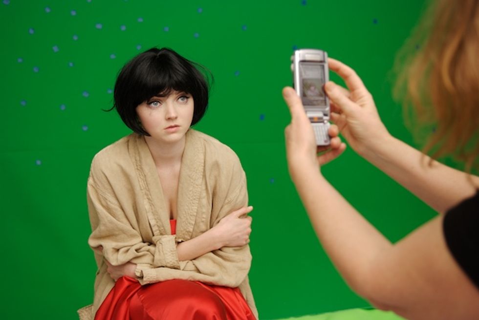 “To give narrative information by withholding all imagery, to see nothing except these faces coming and talking against a color: it's almost like a provocation,” says Potter. But it also fits neatly into the narrative framing. The film is conceived to be shot by a young child named Michaelangelo, who, mobile phone in hand (it was actually shot on a handheld camera), interviews the fashion show’s participants with a child’s blind curiosity.
