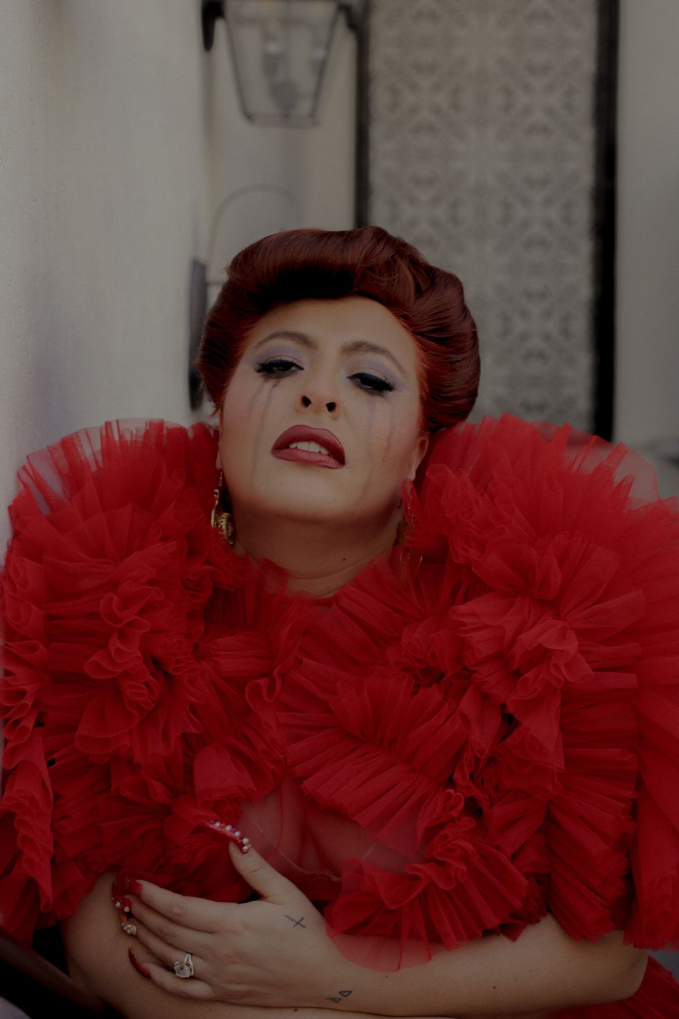 This has been an idea I've had for years, and it's taken me a while to execute because I knew from the beginning that I wanted the fantasy to feel realistic. I wanted the big gowns, and I wanted to not be making things by myself. When you're broke and brown in a DIY scene, there are scarce resources. I knew I wanted it to look the way that the images from Hotel Figueroa did. I wanted it to be grand. Even in newer telenovelas, like Casa de las Flores, everything is about money. Having money, or trying to get money. Starting out poor and becoming rich is a common trope. I wanted to play around with that, because for some reason that theme sticks with a lot of people from latinx culture. Especially being Mexican, with parents from rural towns. Believing that the American dream is about owning homes and cars. If they didn't come to this country, it wouldn't have been possible. It goes beyond just a dream, it is an obsession to become rich.