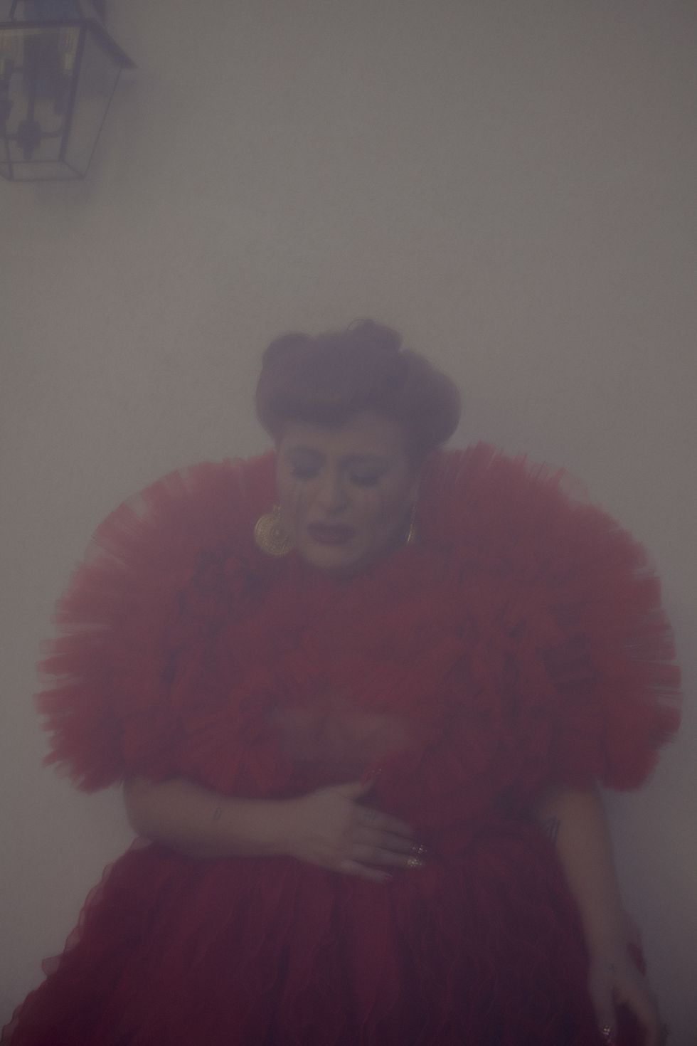 The performance I'm doing is a telenovela, so I wanted these photographs to make me look rich. That kind of extravagant rich that you see in telenovelas, that's how I imagine what it's like to be rich. Big dresses, like the '90s telenovela Marimar, when she finally gets rich and is always in big gowns, hair always on point. Those were the kind of visions I was having. The character we created was very rich, but also very sad and unfulfilled. There's an '80s Mexican duo called Pimpinela, and all their songs were like telenovela. They were theatrical, and the themes of their music were always about wanting more. That's what telenovelas are about.