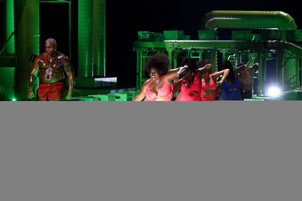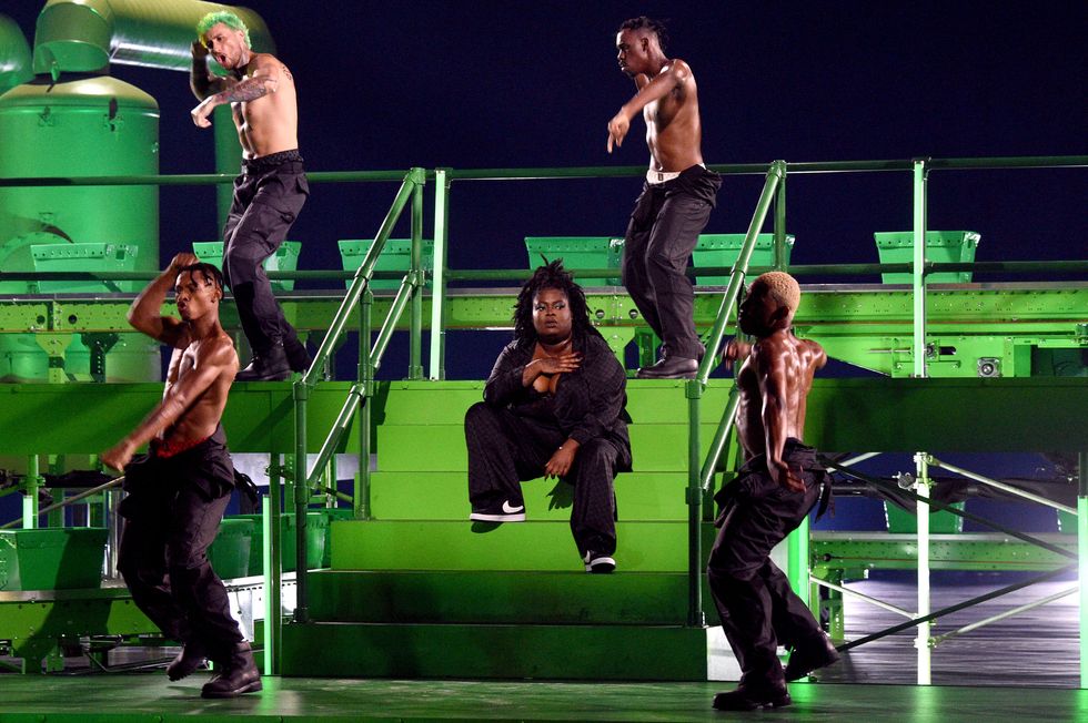 This year, RiRi opened the show, rocking a full mullet, along with dancer and model Parris Goebel — who also choreographed for the first Savage x Fenty show. Rosalia was the first musical performance of the night, followed later by Mustard, Roddy Rich, Ella Mai, Bad Bunny, Miguel, and Travis Scott.