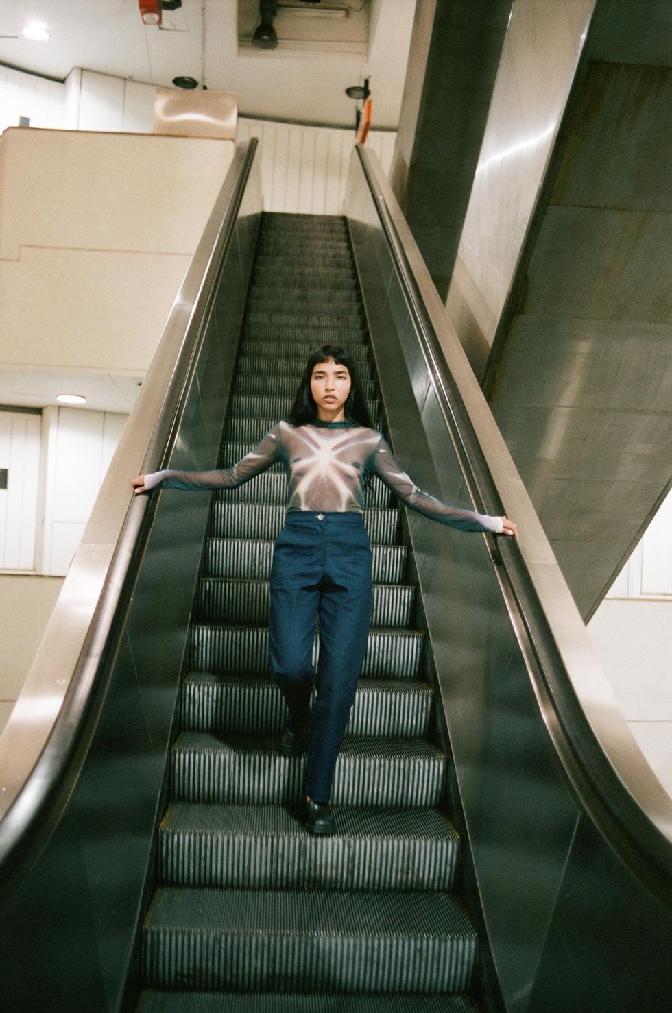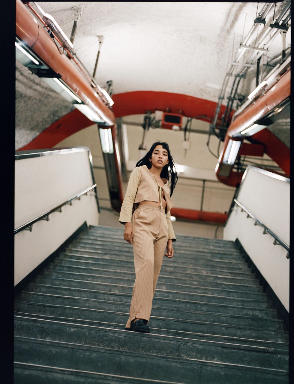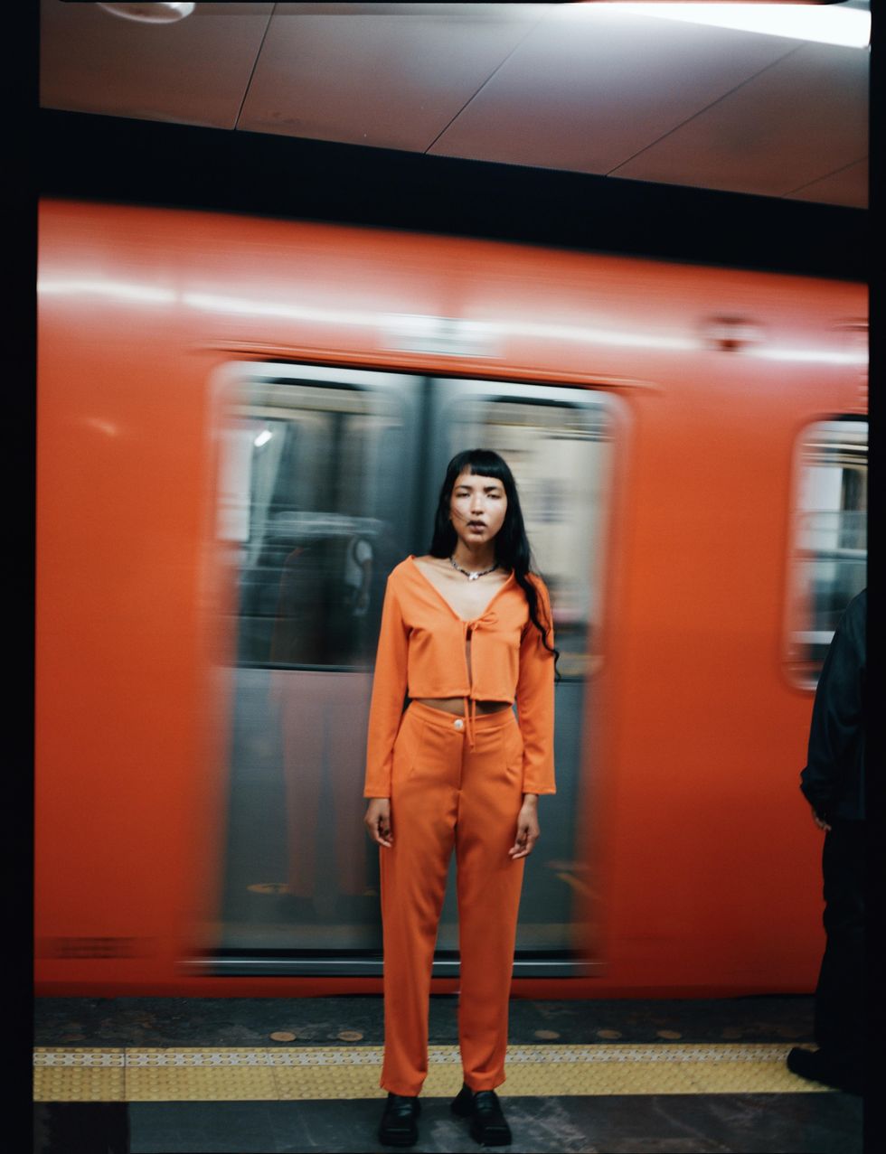 The accompanying campaign underscores these ideas, set against a Mexico City subway station — or "Metro Insurgentes," as Valdes says, adding that it's a "a Mexico City landmark and a place where so many people come in and out from everyday. It shows the dynamic movement of the city pretty well. The saturated bright colors of the trains and the cold marble floors matched perfectly with the clothes and the spirit of the new drop: beauty and movement in everyday life."