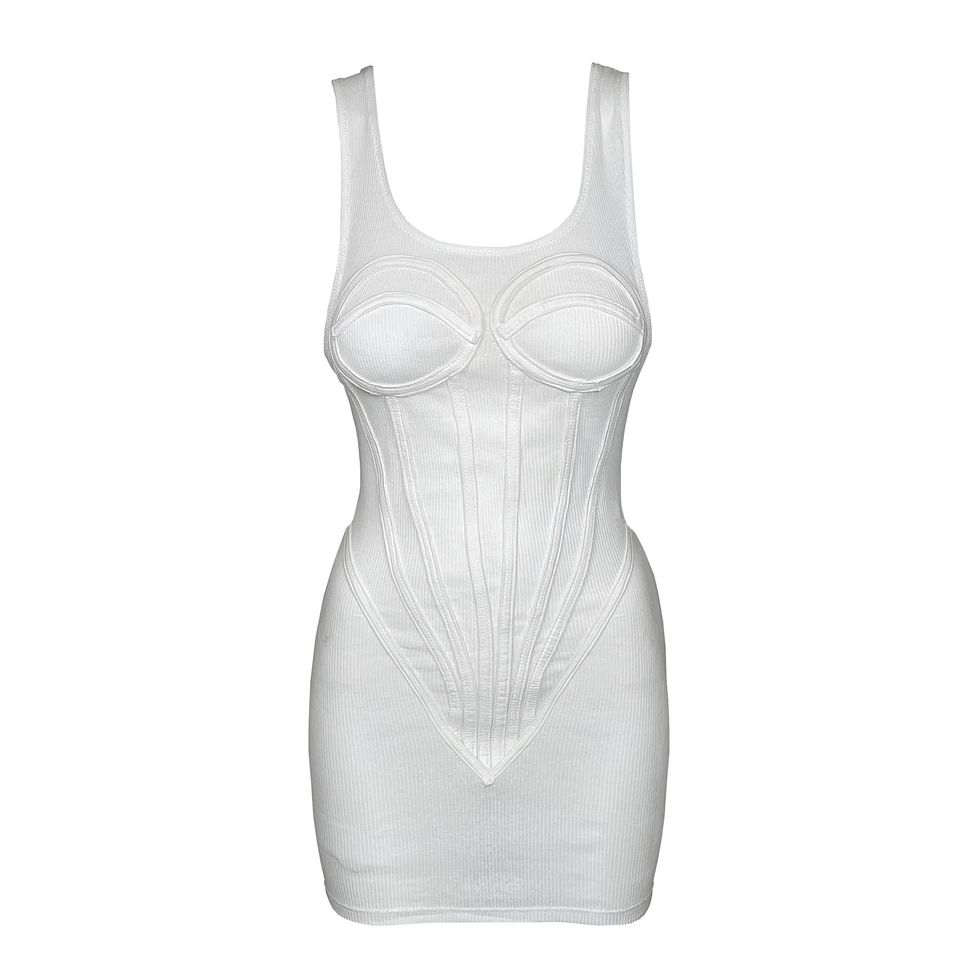 "This collaboration wouldn't have happened without our love Julia Fox," Abel Cepeda Ljoka and Will Kowall, the founders of Seks, tell PAPER. The duo also launched a series of special one-offs to complement the capsule, including a tank thong dress, a bodice made from hardened tanks, and "The Julia": a 2-piece top and skirt inspired by Fox.