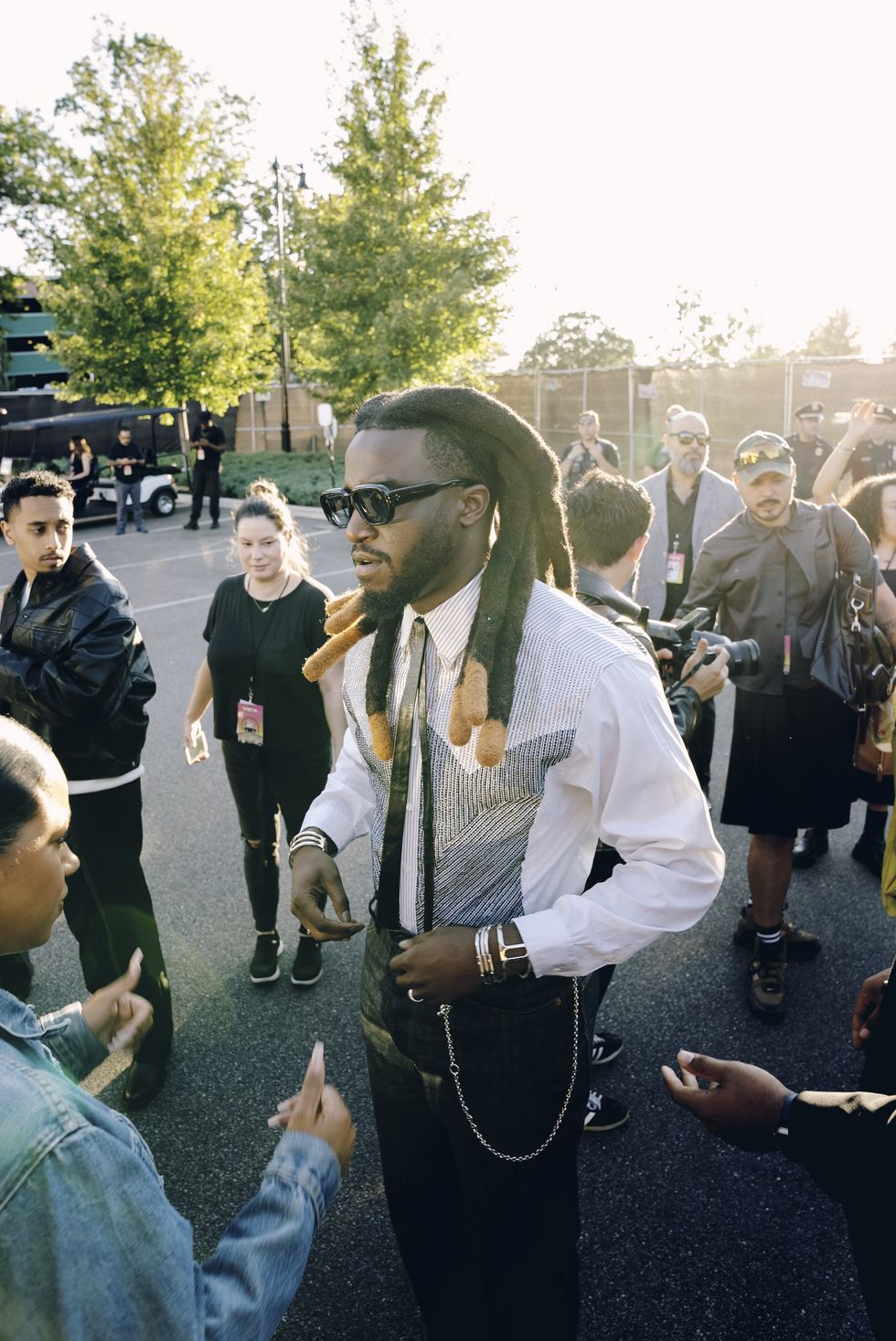 This theme carried on at the 2024 Video Music Awards, where Shaboozey shined in a suave all-Margiela look that made heads turn on the red carpet. A twisted take on the cowboy aesthetic, he wore black Tabi boots with a leather Saint Laurent tie and Western-style button-up.