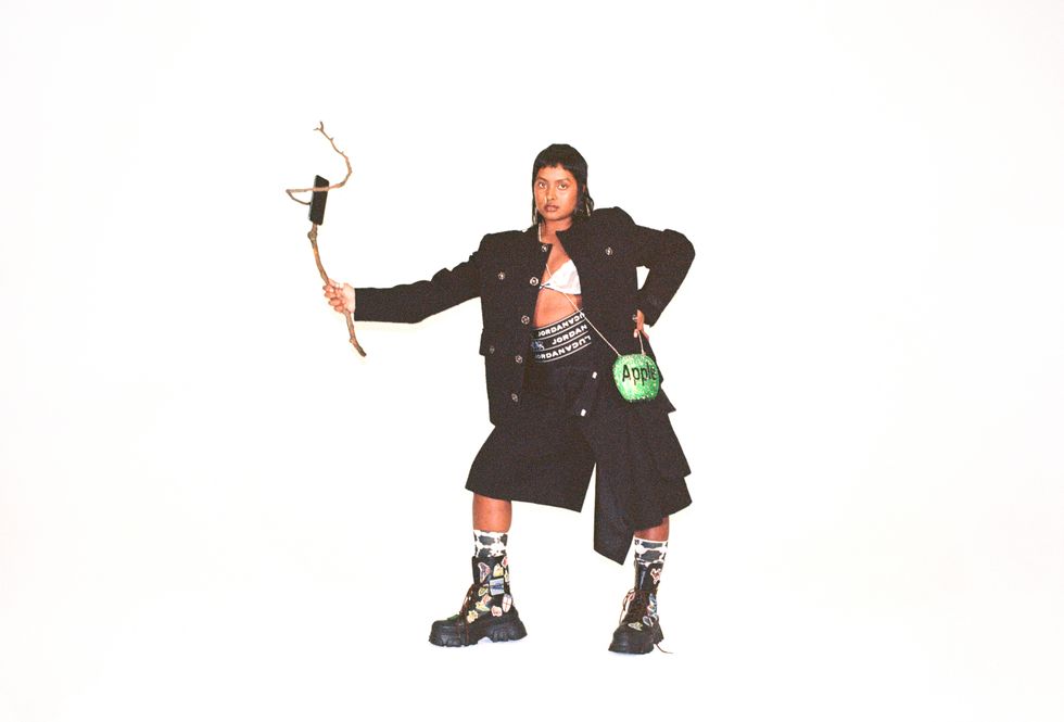 Ravindren has also been outspoken on Instagram about issues in the fashion and creative industries of inclusion, exclusion and, more recently, the link between the ongoing genocide in Palestine and their own Tamil heritage. “ I don't know everything myself, but if I know enough or have a resource of knowledge, I can guide people. It feels like it's a duty to say something if it means people will widen their perspective in order to create change in their own way.” They’ll continue to speak out, Ravindren says, because “there needs to be real systematic change in all levels of the industry, in front and behind the scenes, for us to really say change has happened.”