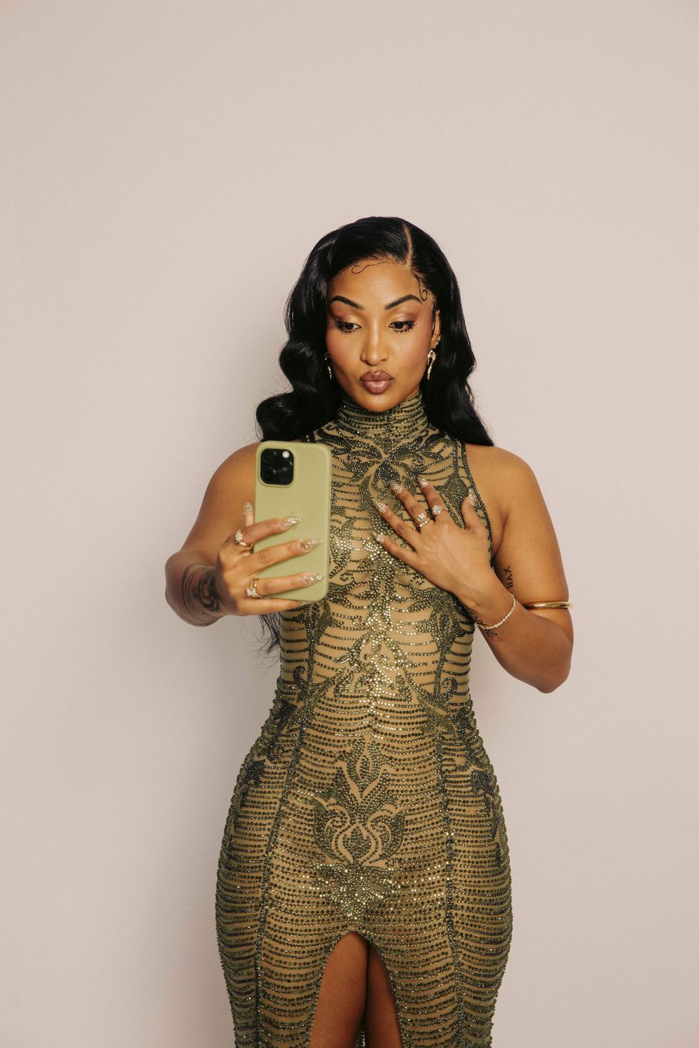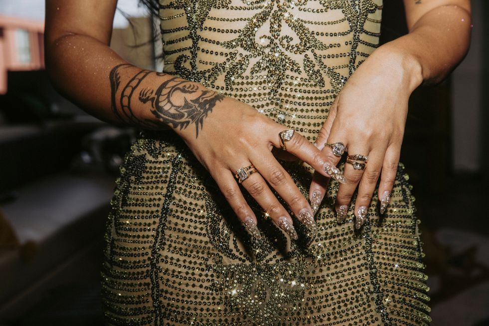 For her moment on the red carpet, Shenseea worked alongside stylist Kris Fe — ultimately choosing a 2004 archival Georges Chakra dress, paired with custom-dyed Stuart Weitzman shoes, rings and bracelet by Fie Isolde, earrings by Mateo New York and arm cuff by Jennifer Fischer.