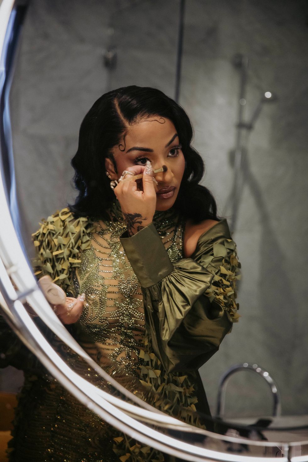 "Shenseea's vision for the carpet was all about channeling goddess energy, and I really wanted to honor that through her look," Fe tells PAPER. "It wasn’t just about making something bold; it was about choosing a look that felt both powerful and true to her essence. The process involved a lot of thought and attention to detail, balancing that fierce, divine energy with a nod to her iconic dragon logo. Watching it all come together was truly rewarding. It felt amazing to see the vision unfold."