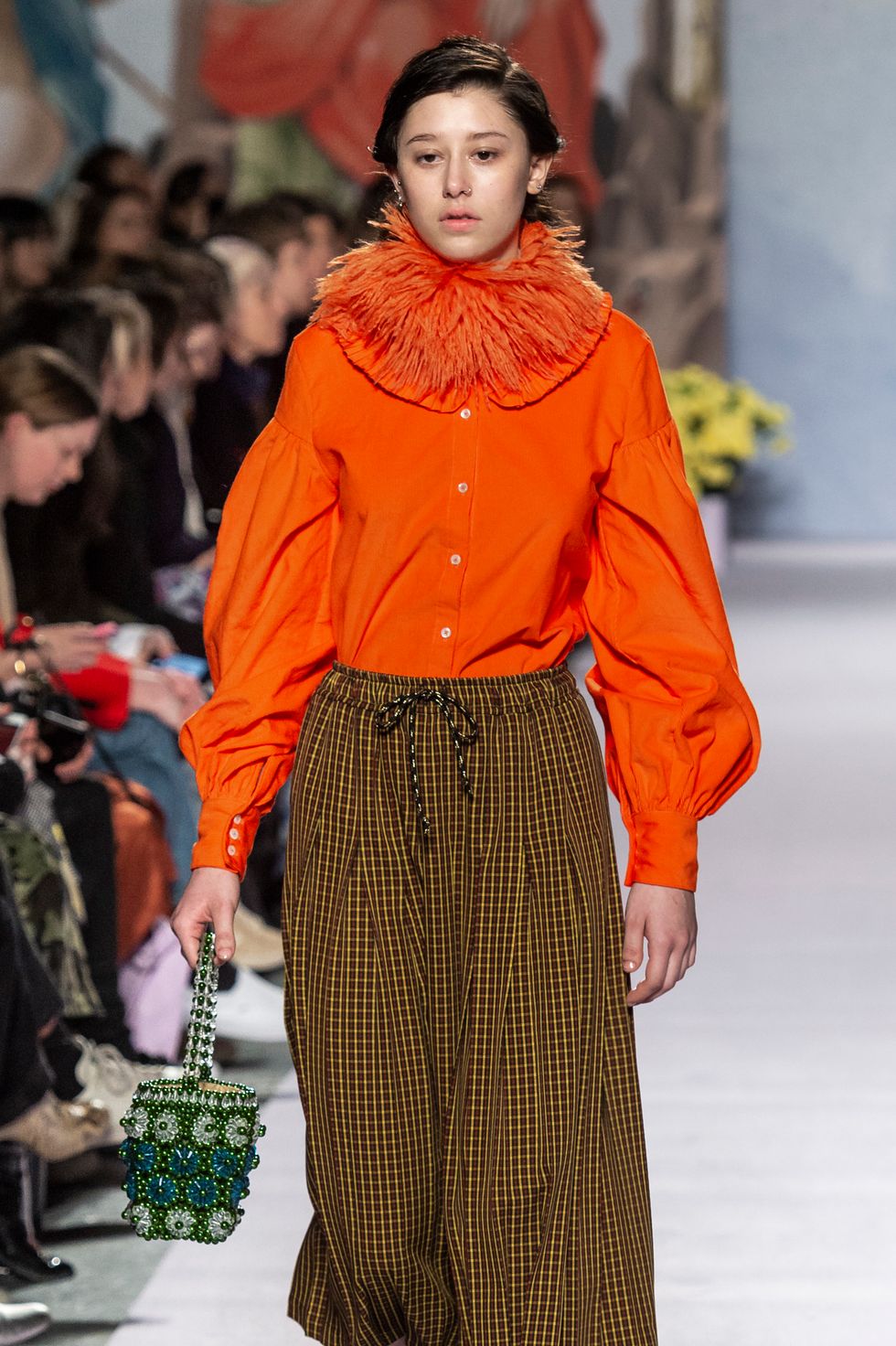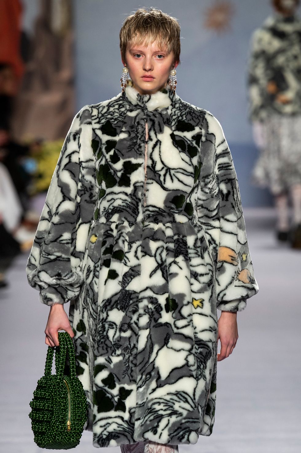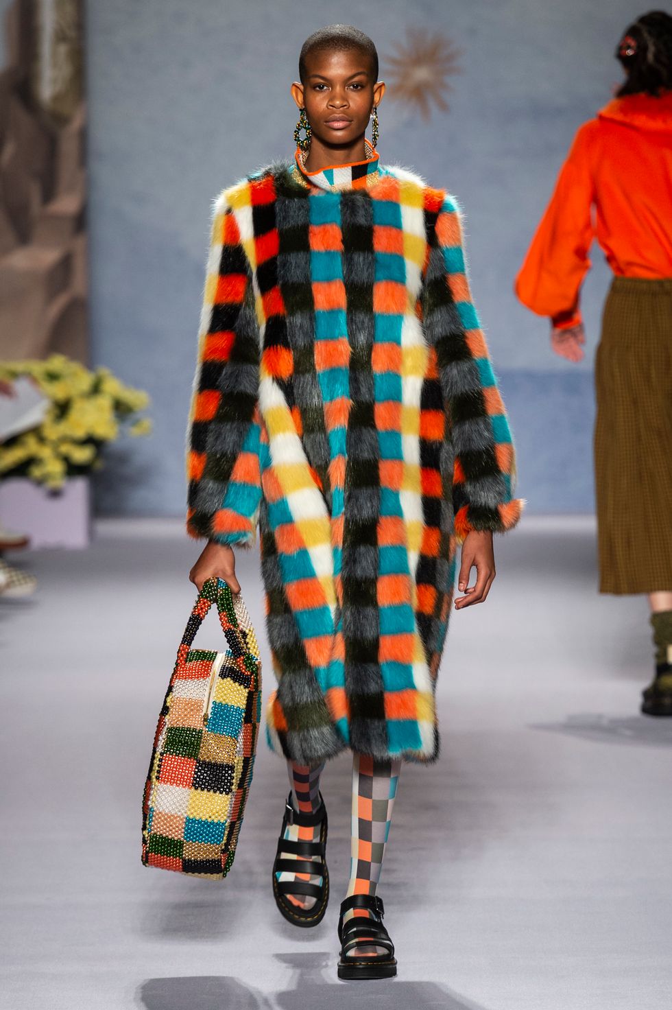 Matching your bag to your outfit is not a new concept, but Shrimps definitely made it feel modern and fun. Coats that were printed in vibrant patterns had bags to match exactly, in contrasting textiles no less (fur with pearls, for example).