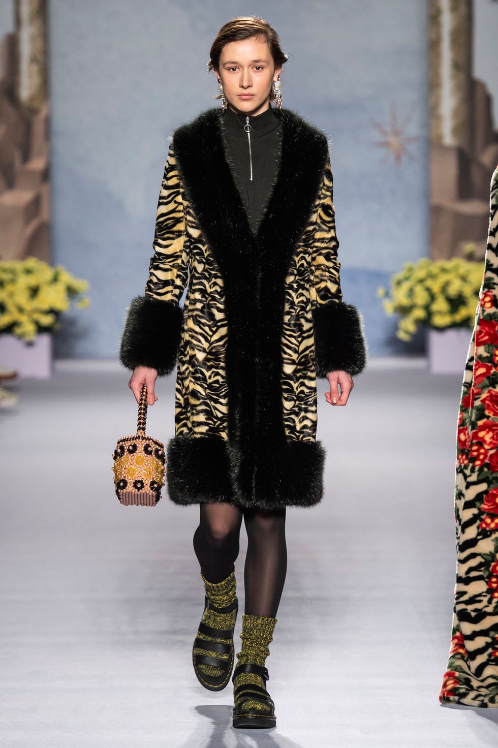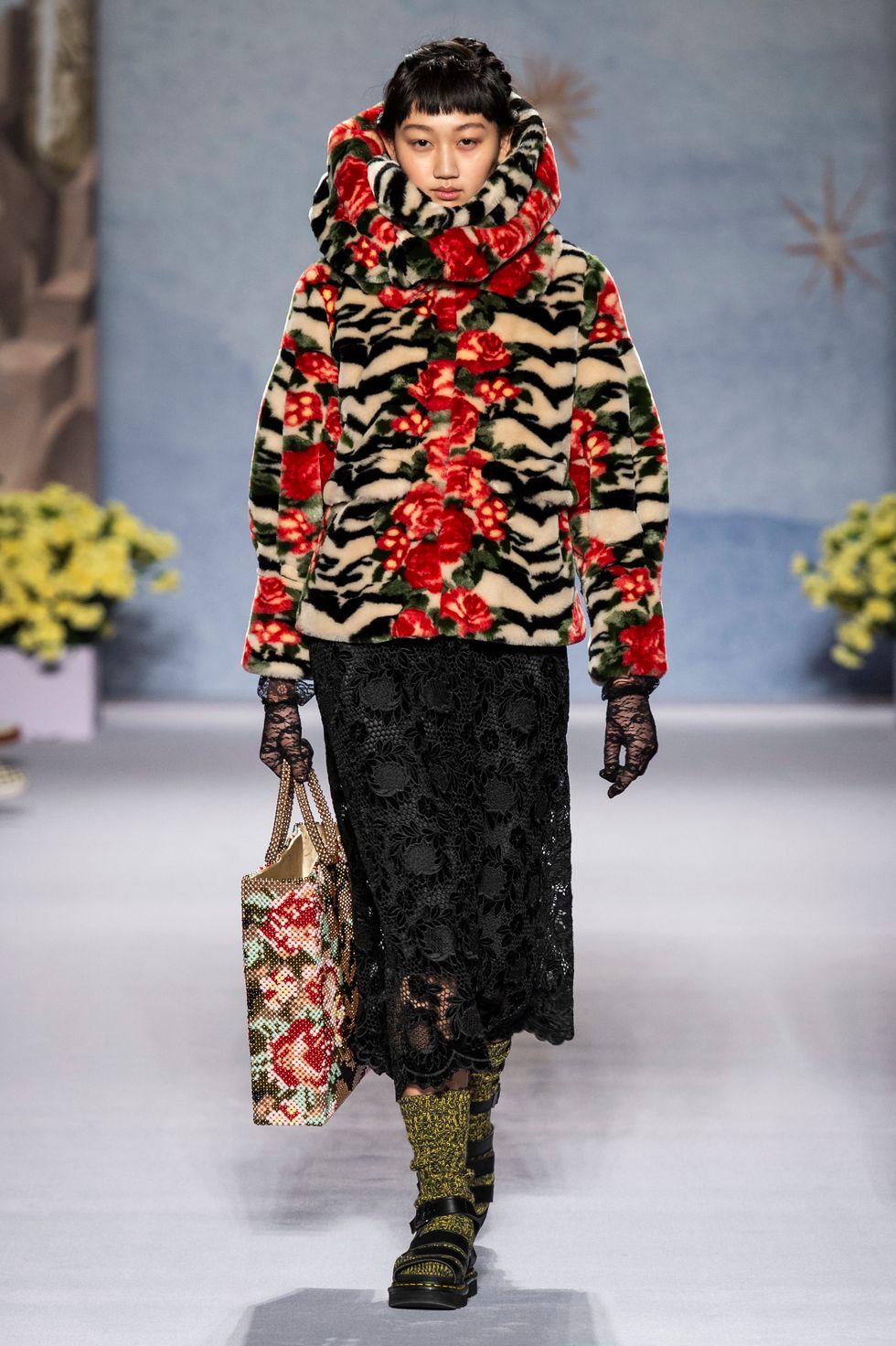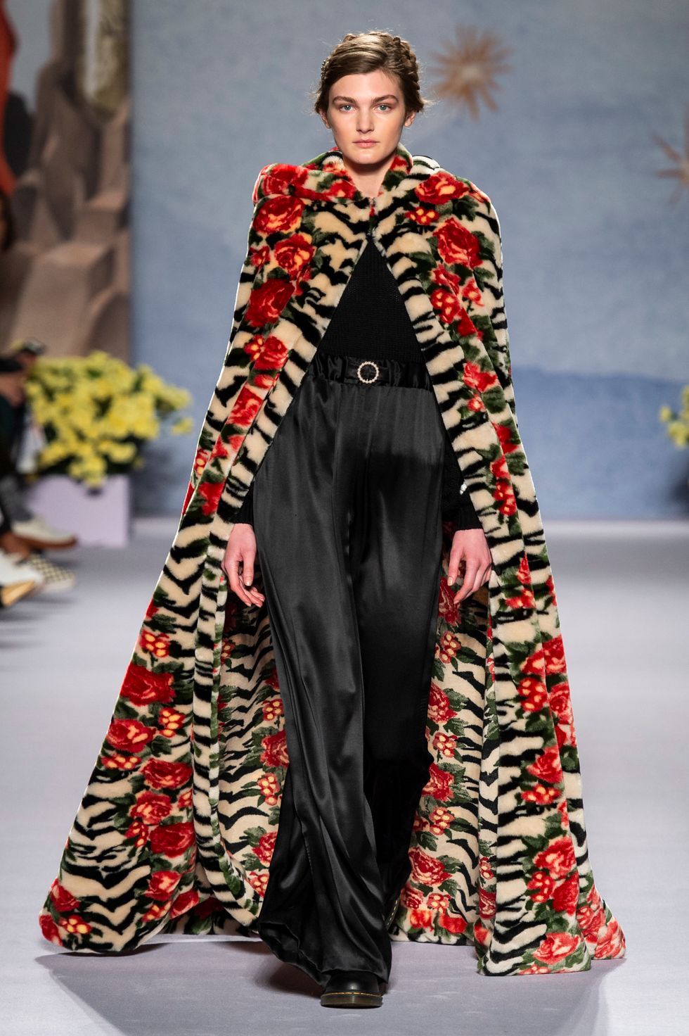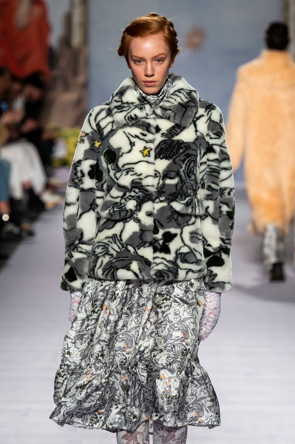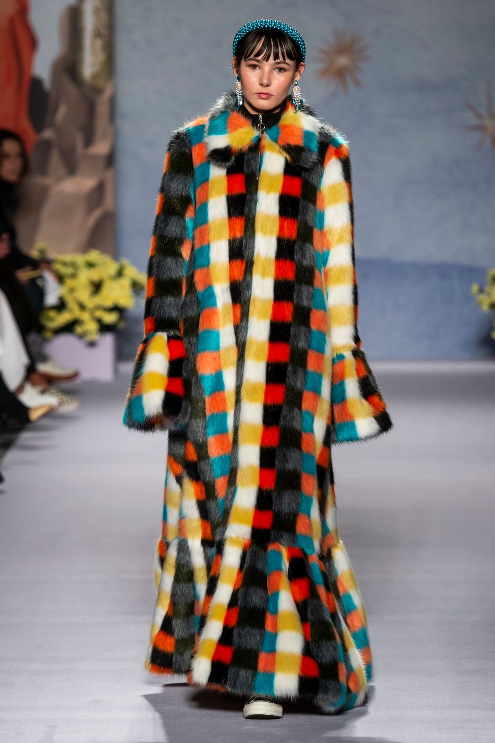 Shrimps does a printed faux fur well. This season, they took things to the next level with more extreme, intricate patterns then ever before. Rainbow checks, roses with zebra stripes and collaged faces were all there — plus more.