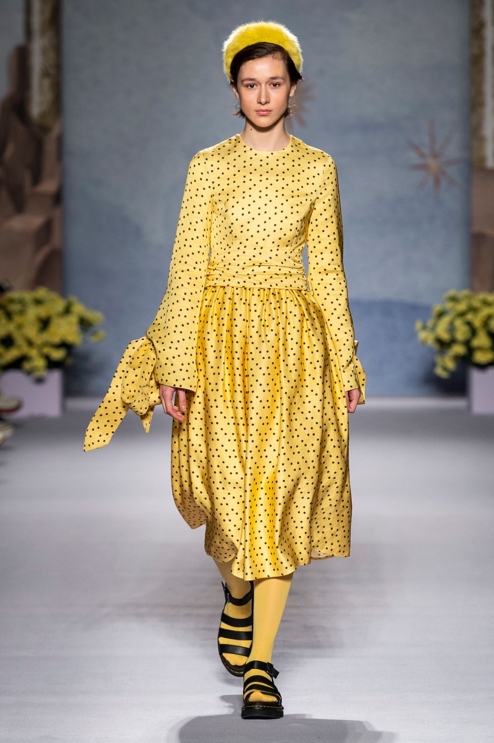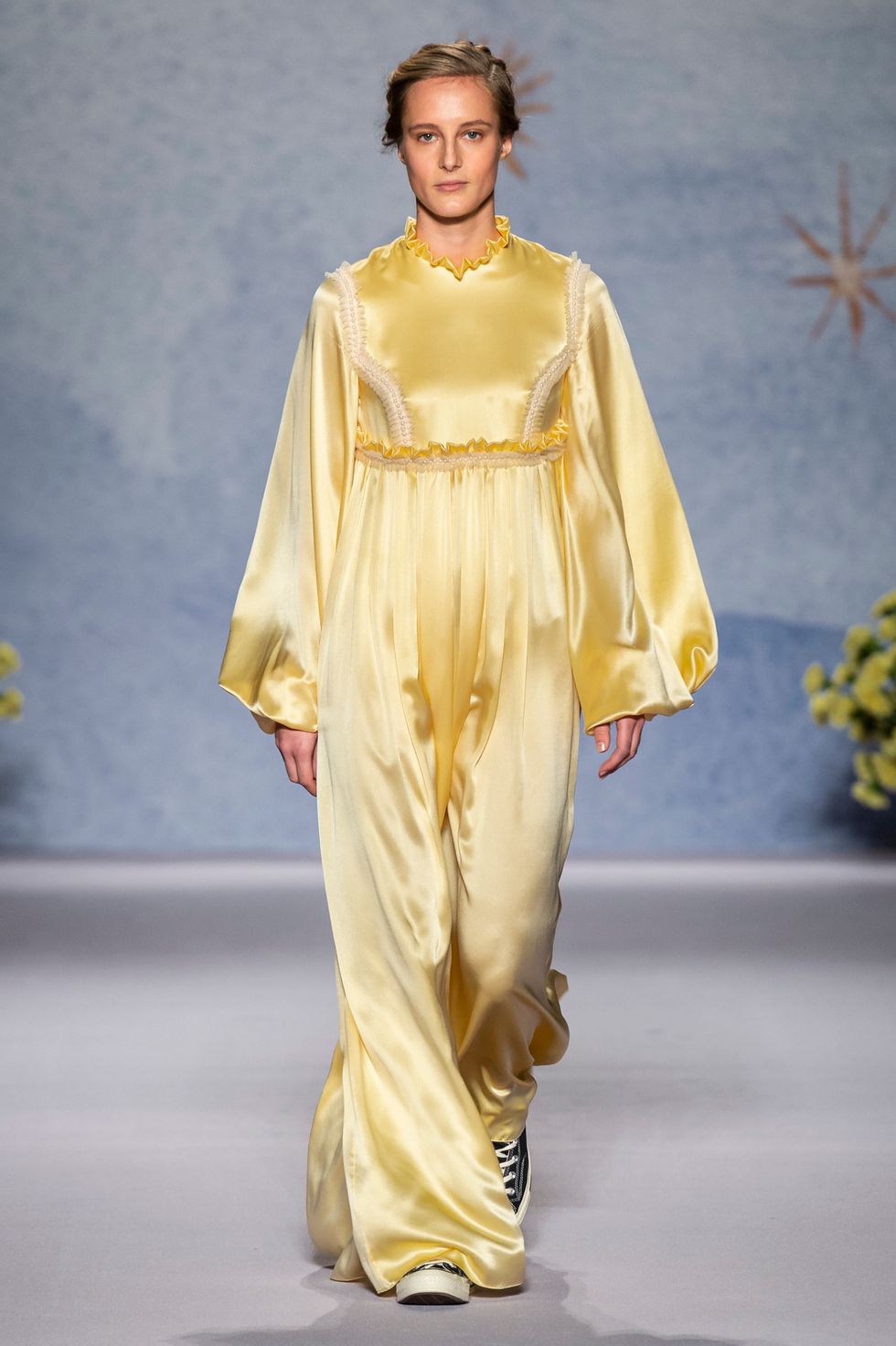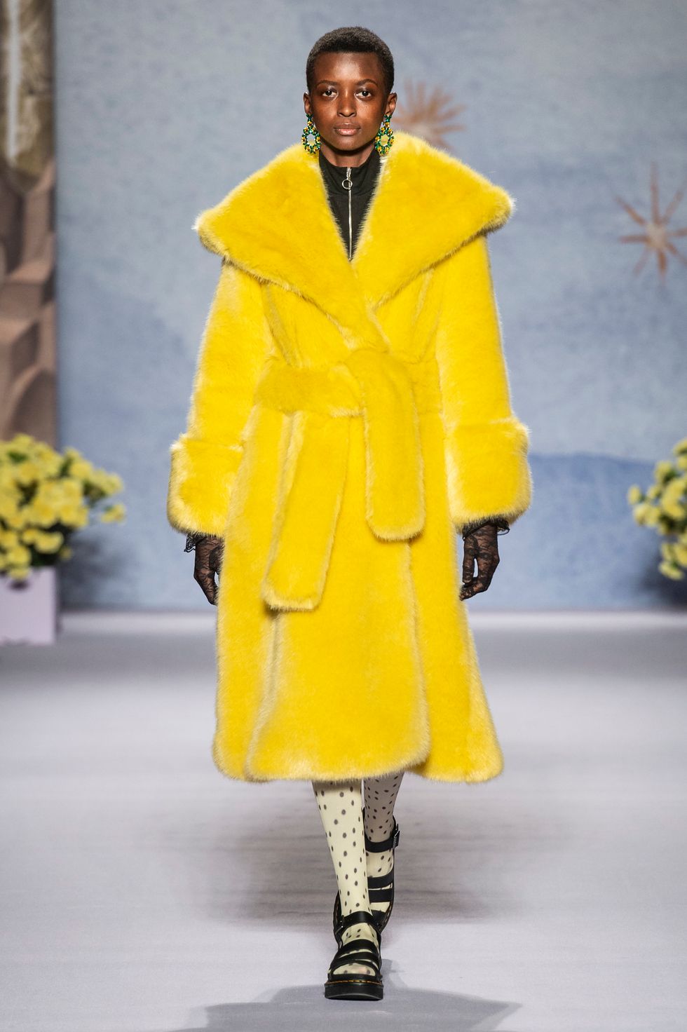 Nearly half of the collection was done in all shades of yellow. There were silky pastel dresses as well as chunky faux furs done robe-style in bright yellow.