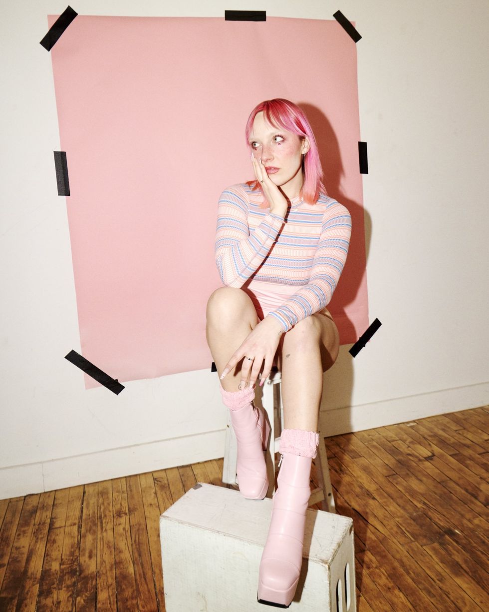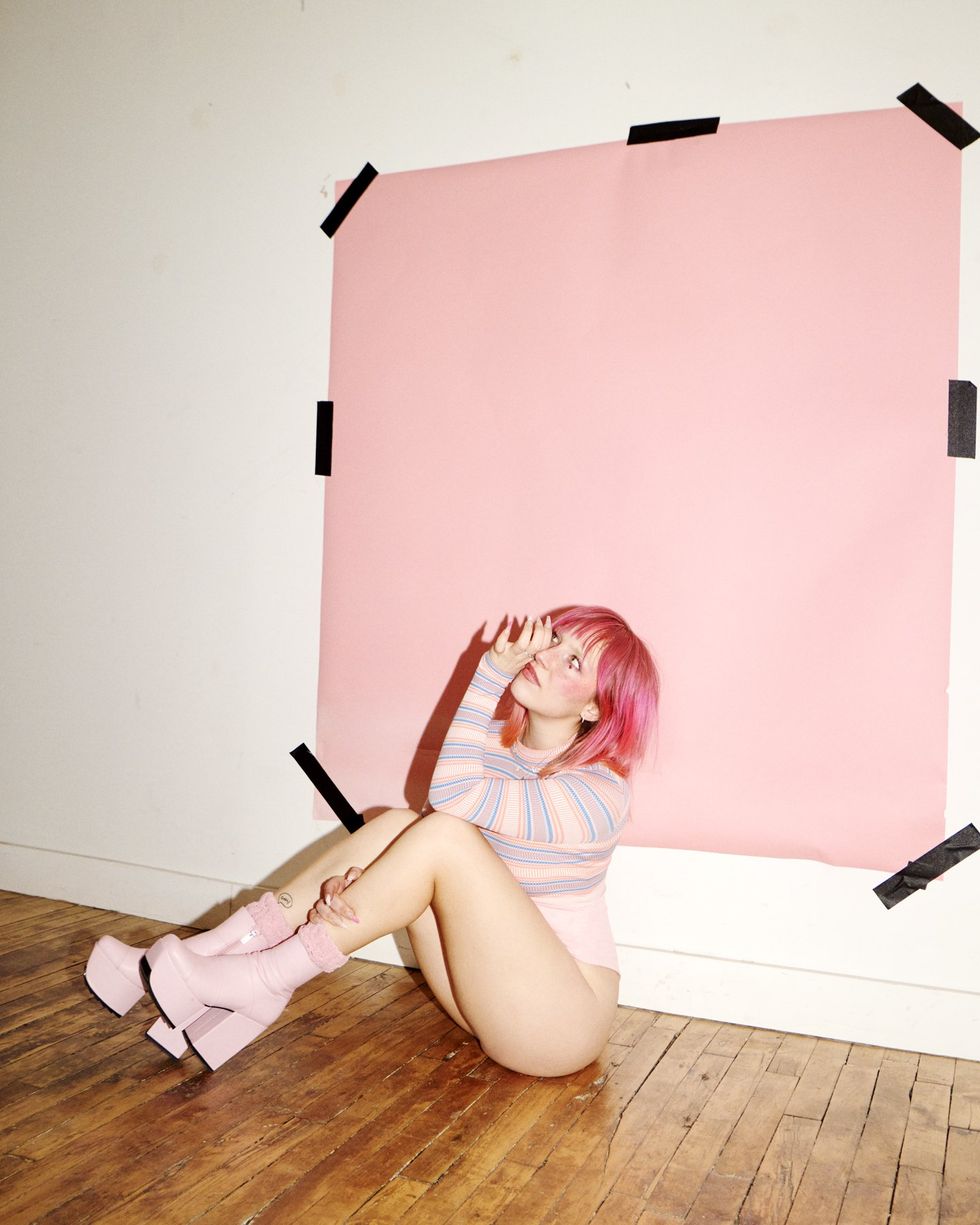 In the same way that "For Rent" reclaims some agency over her own trauma, Shybaby functions as an outlet for Eire to validate and work through whatever life throws at her and have fun doing it at the same time. "Creating the visuals and allowing myself to be deeply vulnerable and bare, but seen, has become just as important to this persona as the lyrics, the walls of sound, the fun hooks and the opportunity to be heard and hopefully felt. I do all my own styling and makeup and have so much love and appreciation for everyone who is down to collaborate and contribute to creative direction to make these things with me. (This time, one of my best friends, Kelsey Wagner.)"