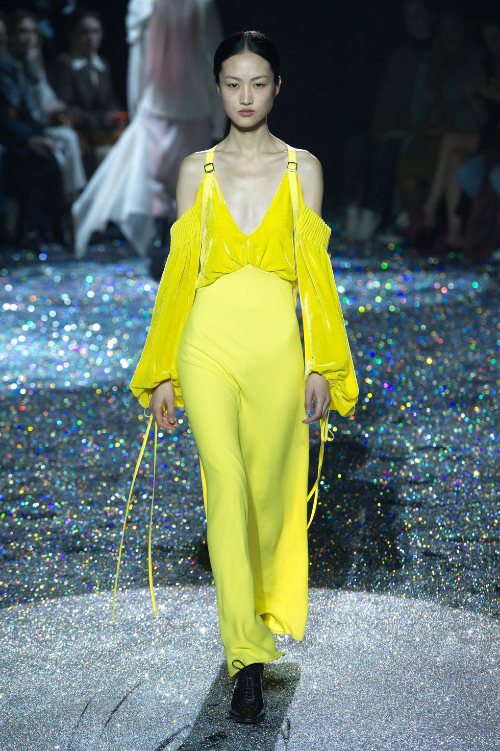 For Sies Marjan's fall 2019 collection, Dutch creative director Sander Lak covered the entire runway area in thick, sparking Swarovski crystals. It wasn't that unusual for the designer — Lak has an intense affinity for color and texture and how the two often intertwine. Here's everything you need to know about the show.