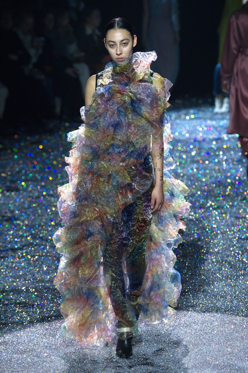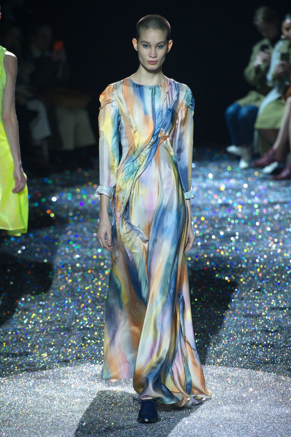 The last two looks that closed the show were a cloud of pastel rainbow chiffon. Both seemed to float down the runway.