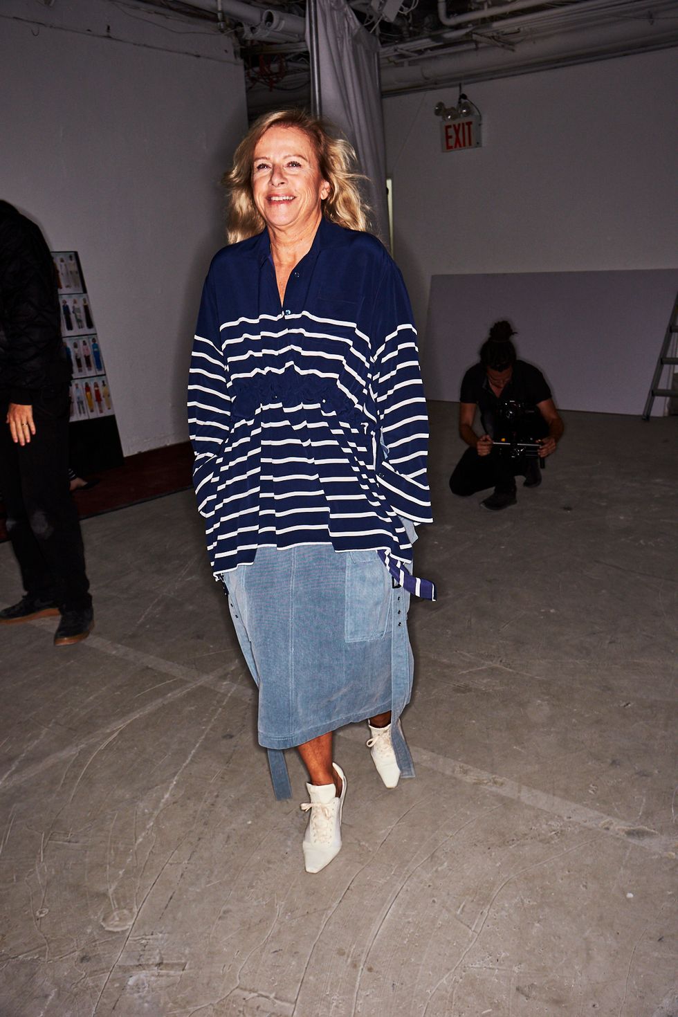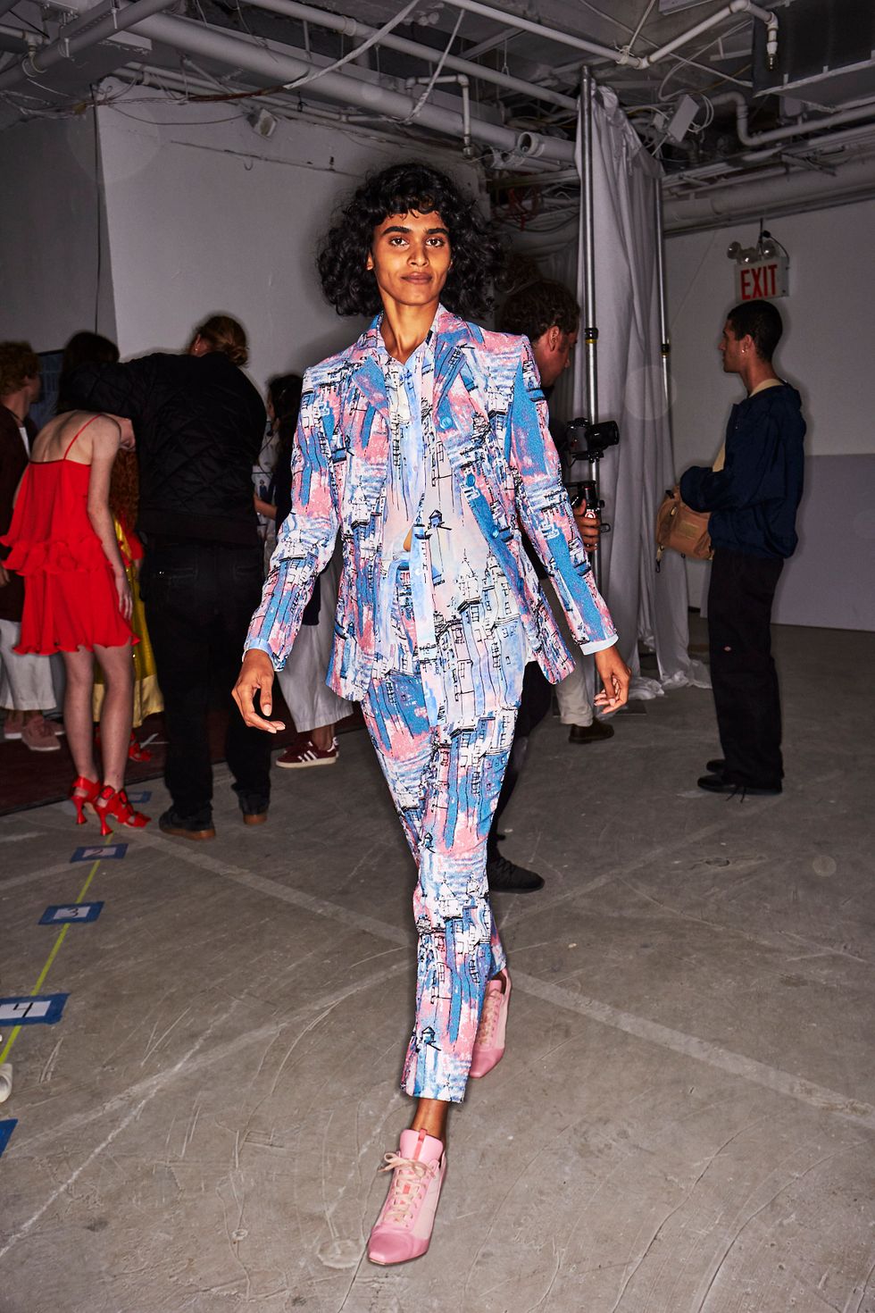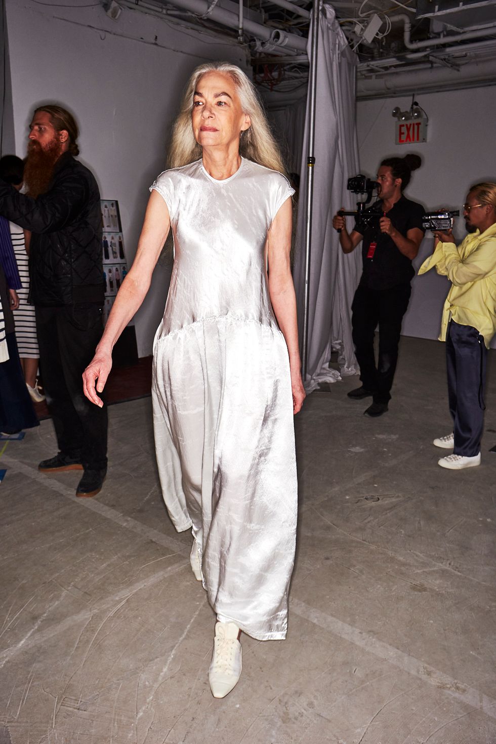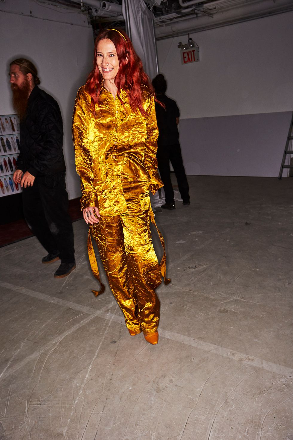 The show's cast was made up of people close to Lak including his mother Marjan (the 36-year-old's label bears his parents' first names, Sies being his father). She walked the runway in a gathered, polo-style tunic and a pewter skirt."It was tailor made for her last minute," he says, citing her eternal support and initial critiques about the garments' pocket placement and fit. "Having a moment where I can celebrate what I'm doing with the people I love is really great," Lak goes on. "Instead of just having them look at it, they're a part of it."