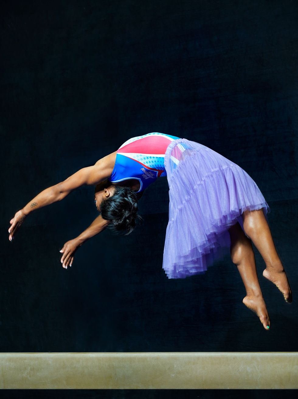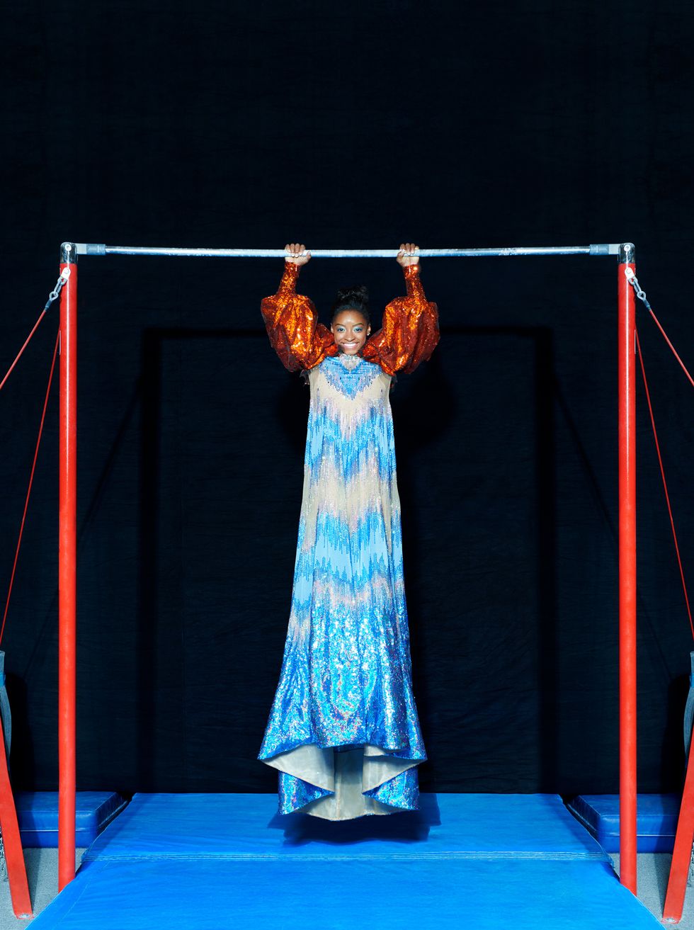 Biles, who first started gymnastics in 2003 after she visited a training center while on a daycare field trip when she was six, has been competing as an elite gymnast since 2011. She's now the most decorated American gymnast. Ever. Period. Since last fall, the champion, along with two new coaches, trains twice a day, six days a week at her home-base gym outside of Houston. To calm her nerves about competing again and the exceptional expectations on her — the 2020 Tokyo Olympics aren't very far off, as everyone reminds her — she's focusing now on her preparation for the U.S. Classic, where she'll compete on the balance beam and uneven bars before she adds floor and vault routines at the U.S. Championships in August in Boston.