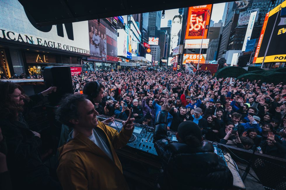 Despite inclement weather, the tech-savvy trio announced a final pop-up ahead of their Madison Square Garden show, this time in the middle of Times Square out of a school bus. While the actual lot in which the show was held was unable to hold nearly as many people, passersby and unsuspecting tourists slowed their stroll to witness some of the biggest acts in the world huddled inside a converted school bus broadcasting electronic dance music to the masses.