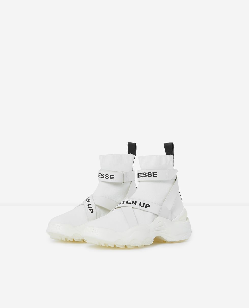 This is the first time I've designed my own shoes, so I ensured that every element speaks to a part of me, and my style. We wanted to create sneakers that embrace the idea of going fast! When you see my two designs: a sock-sneaker bound in a chunky velcro strap, and a chunky sportswear-influenced lace-up, you see The Kooples, but also a different side to the brand, that fits them well.