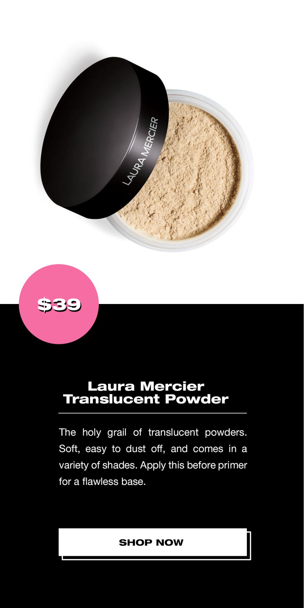 First, I start with a water-based moisturizer that locks hydration into my skin. Then, I go in with a setting powder that's close to my skin-tone to smooth over pores and create a protective barrier against the makeup. (I love the Laura Mercier setting powders because they offer a line of radiant ones that have pearl pigments infused into the powder for a soft glow.) Next, I use a small bit of primer all over my face to lock everything in — make sure it's not a silicone-based one.