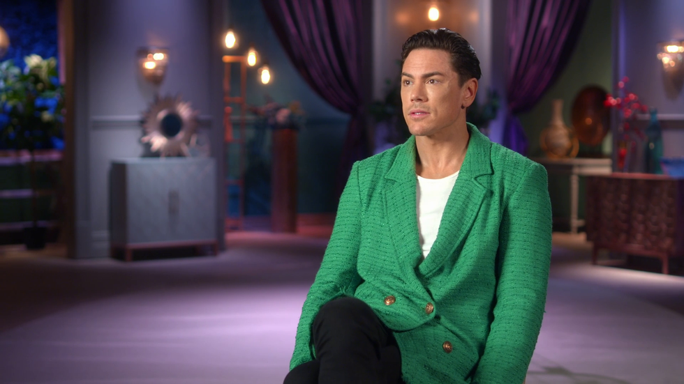 This suit jacket is somehow the least offensive thing Tom Sandoval has done this week, considering he recently compared his life to both the O.J. Simpson trial and the George Floyd protests. For a man who wants to be seen as youthful badly enough to paint his nails with white-out, he sure knows how to pick the most matronly pieces of clothing.