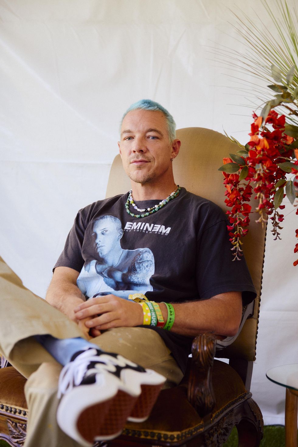 At any given moment, a scan of the space unveiled a mix of faces off your timeline and TV. Leo DiCaprio, Vanessa Hudgens, Charles Melton and Chloe Cherry all ran around the House, dancing next to everyone from Bomanizer and Eric Sedeño to The Old Gays in matching head-to-toe HUGO fits. Billie Eilish herself hosted a party after her headlining Saturday night set, inviting Justin and Hailey Bieber, Carly Rae Jepsen and Finneas to celebrate her eponymous fragrance line.