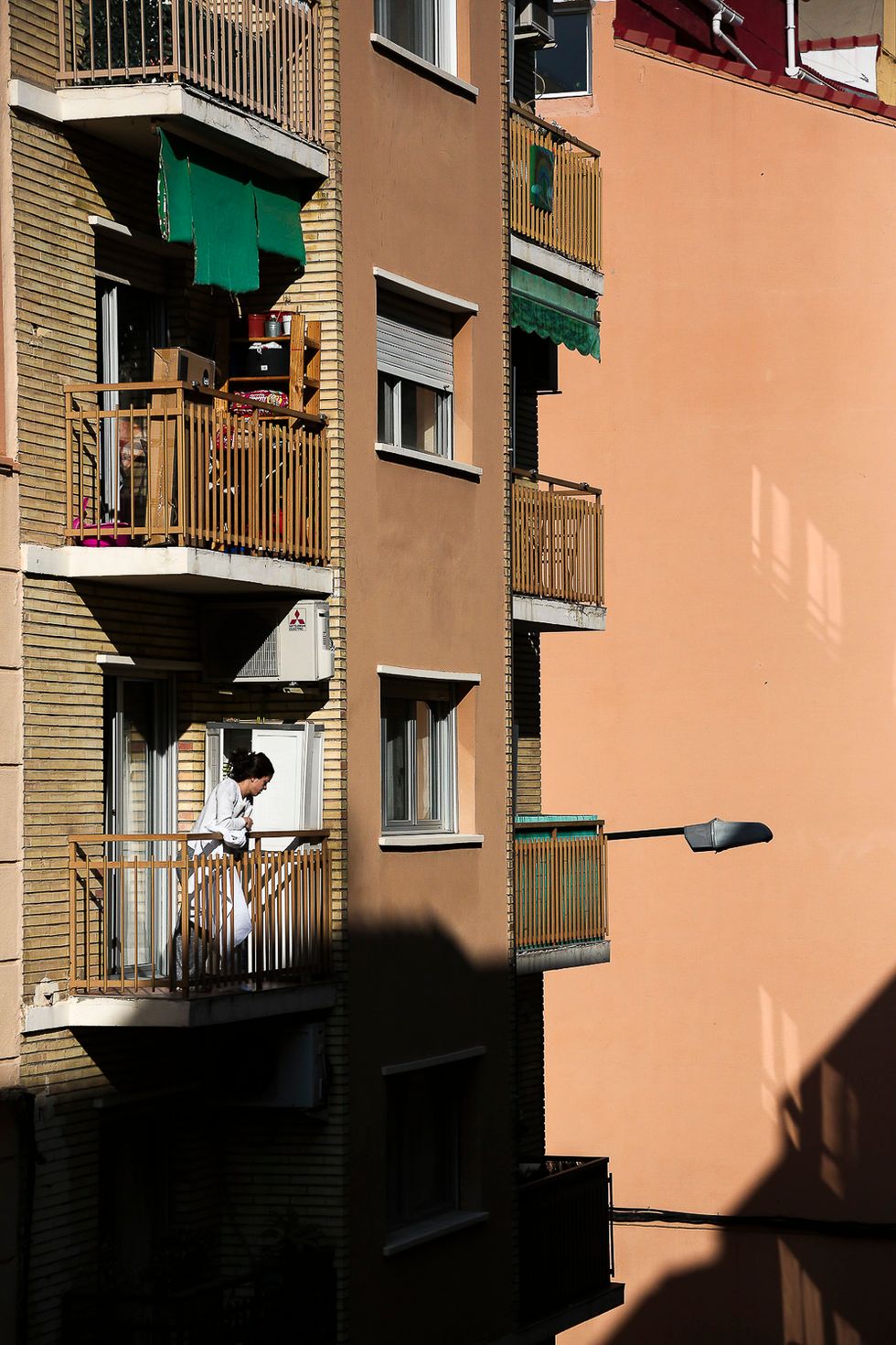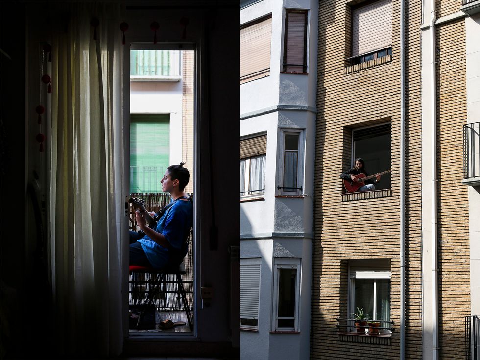 At the same time as I was getting to know my neighbors, there came news of ice skating rinks being turned into morgues in Madrid and rising daily mortality rates suggested an atmosphere throughout the rest of the country straight out of the 1918 Spanish flu pandemic. A public that had always greeted each other with two kisses now looked at one another at the grocery store with a sense of suspicion. And so while there was this new perspective of pause and possibility on our street, there was also a larger sense of guilt. It felt irresponsible and strange to be connected to three of COVID-19's most affected countries but to be doing relatively okay here in our apartment. There was a cognitive dissonance to reading about rising death tolls in other parts of Spain, testing and medical delays in the States or obfuscation and sanctions-related impediments in Iran while my sister and I strung lights between our balconies like this new circumstance was a holiday. I found myself feeling anxious and defeated but also inspired and calm. I guess there is no binary to this experience.