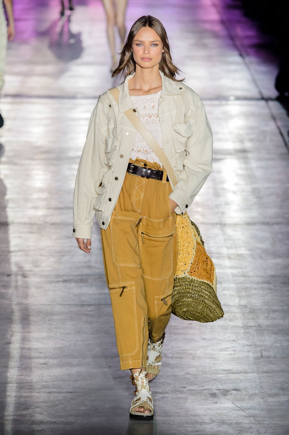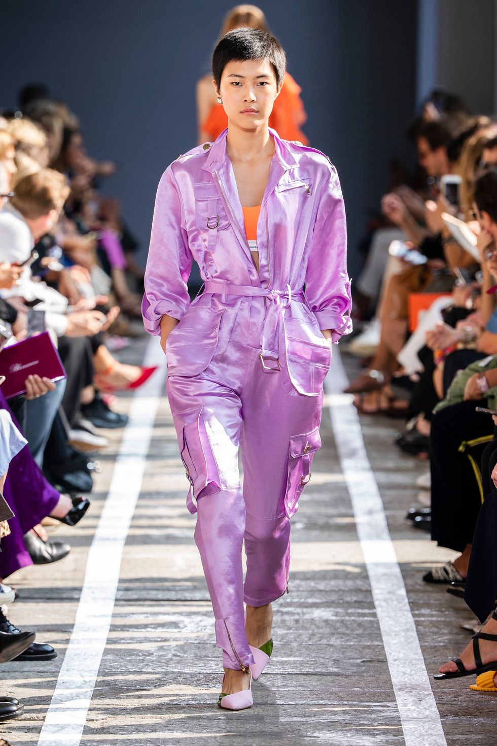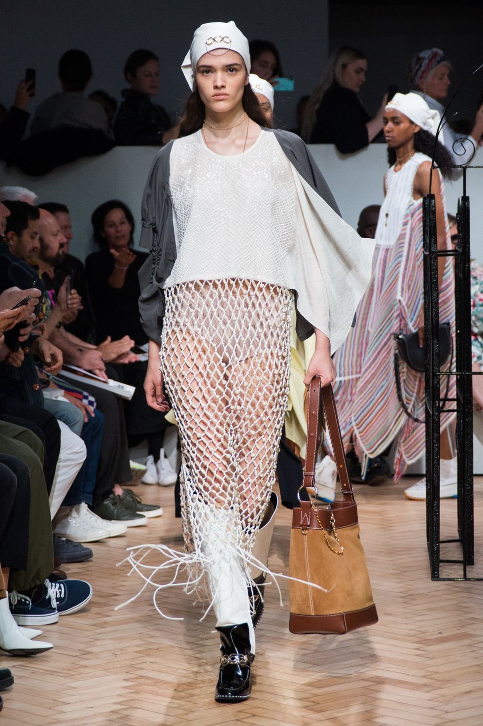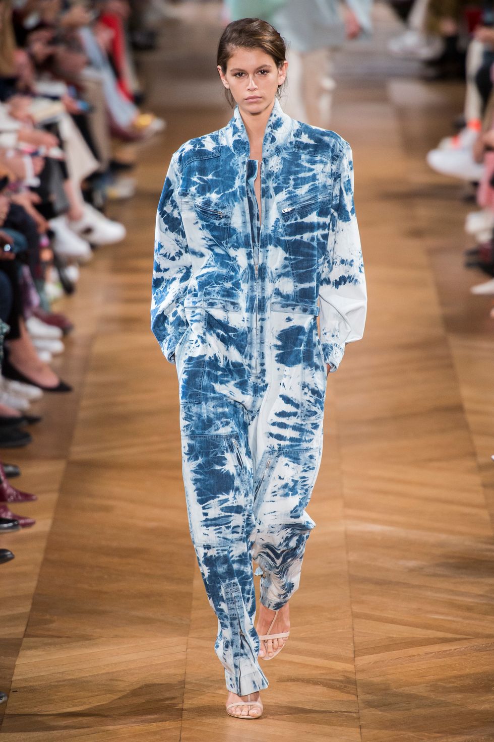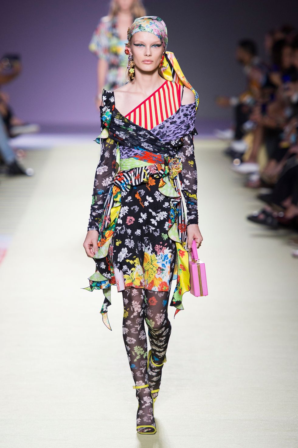 The spring 2019 season is full of bold statements. Sexy looks from net dresses and body-skimming bike shorts to the illustrious little black dress balance out quirkier motifs and details like tie dye patterns, faces as prints, and acid wash denim. Burnt orange and ombré gradations make for fresh additions on classic silhouettes. For the glamour puss, there are ostrich feathers, billowy sleeves, and headscarves abound. More utility minded style mavens can look forward to paratrooper ensembles, ski goggle-esque shades, and giant bags for ample storage. See more of our favorite spring 2019 trends, below.